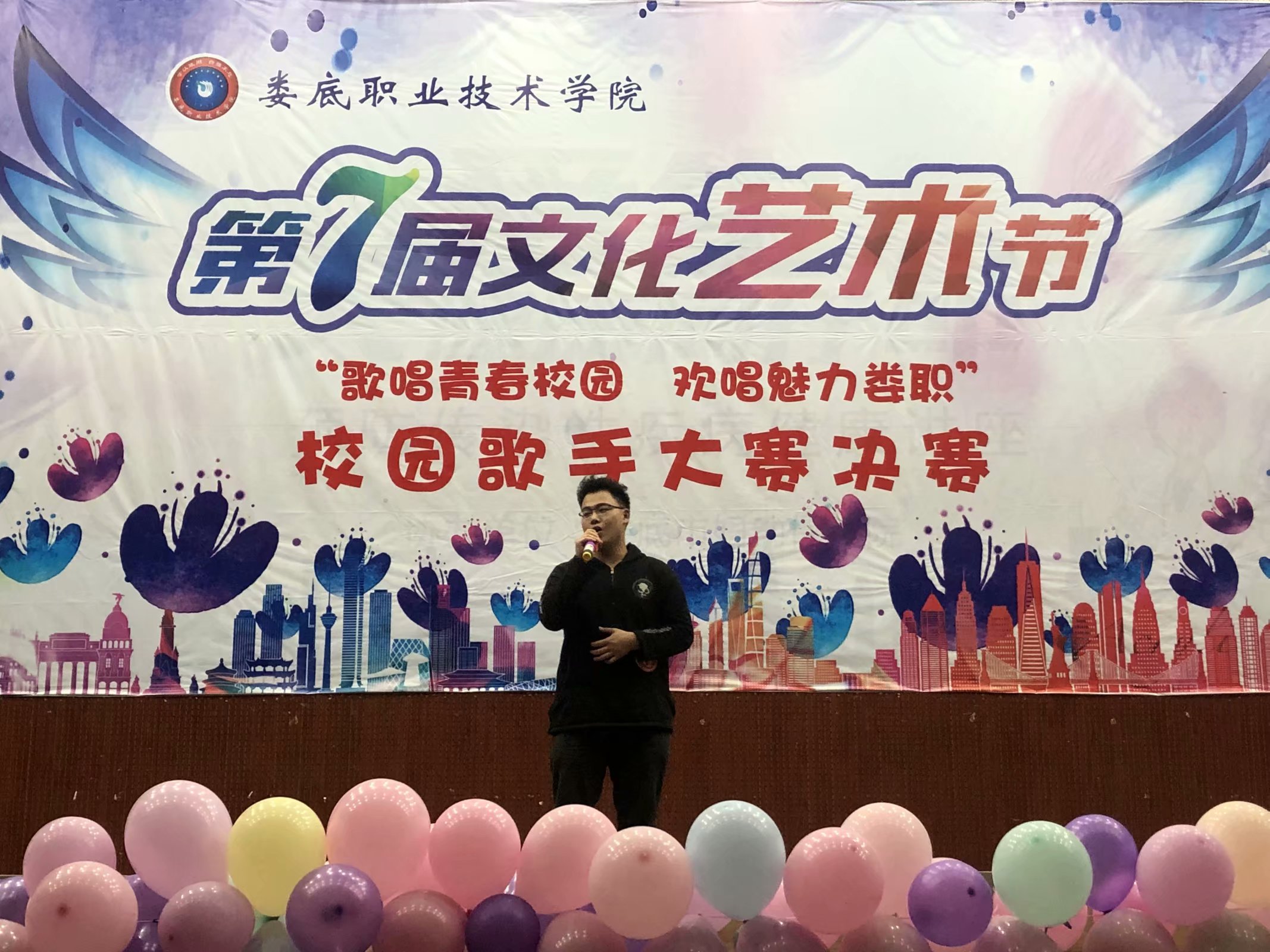 为了提高学生的综合素质,丰富课余生活,体现学校丰富多彩的文化内涵,展现新一代大学生蓬勃向上的精神风貌,营造清新文明的校园文化氛围。 2019年11月21日晚,由湖南娄底职业技术学院团学委举办的“ 第七届文化艺术节”歌手大赛在新培训楼102隆重举行,娄职艺术团团长刘轶中,文化传播学院副教授杨翰儒、校宣传部副部长副教授张波作为评委出席了本次活动。