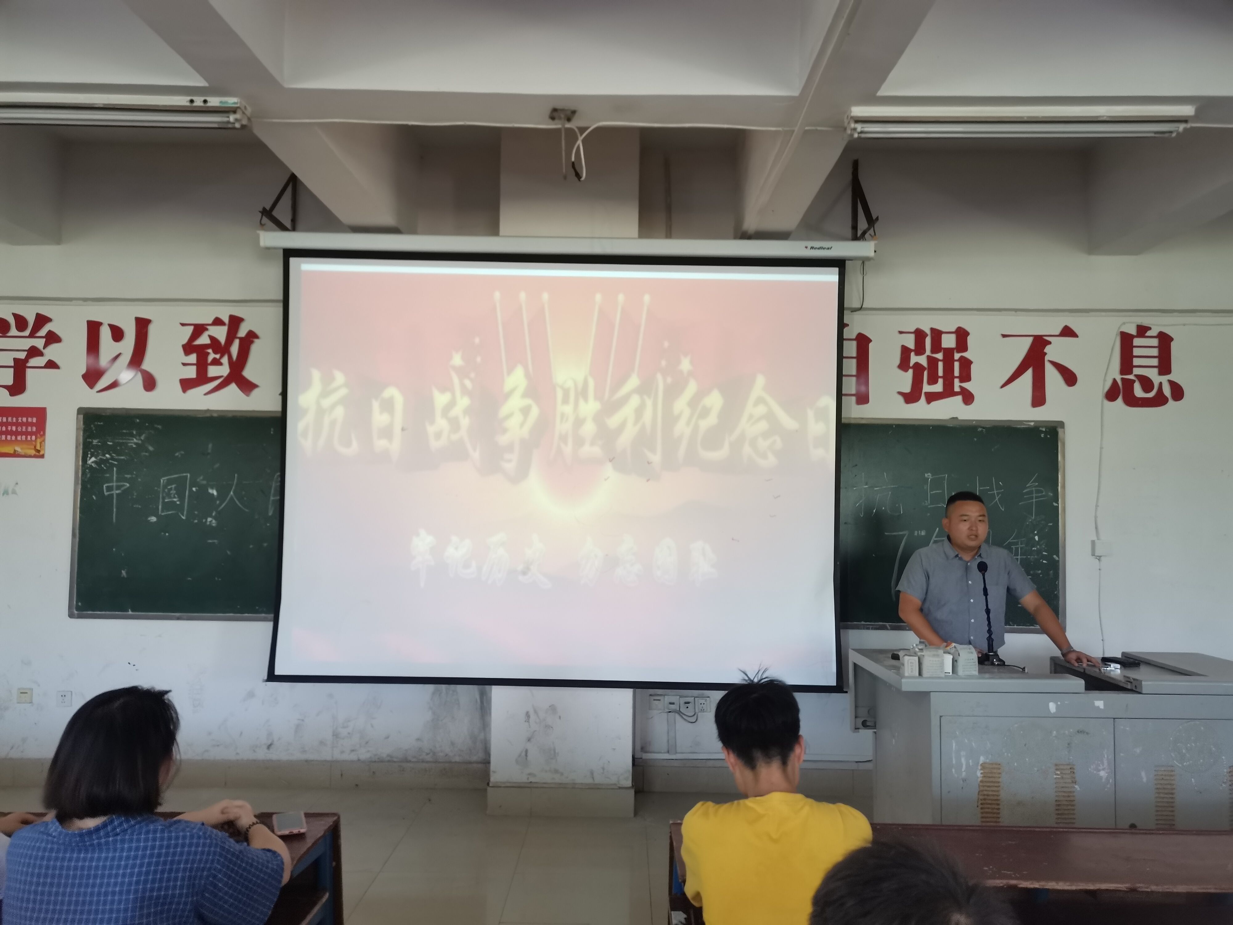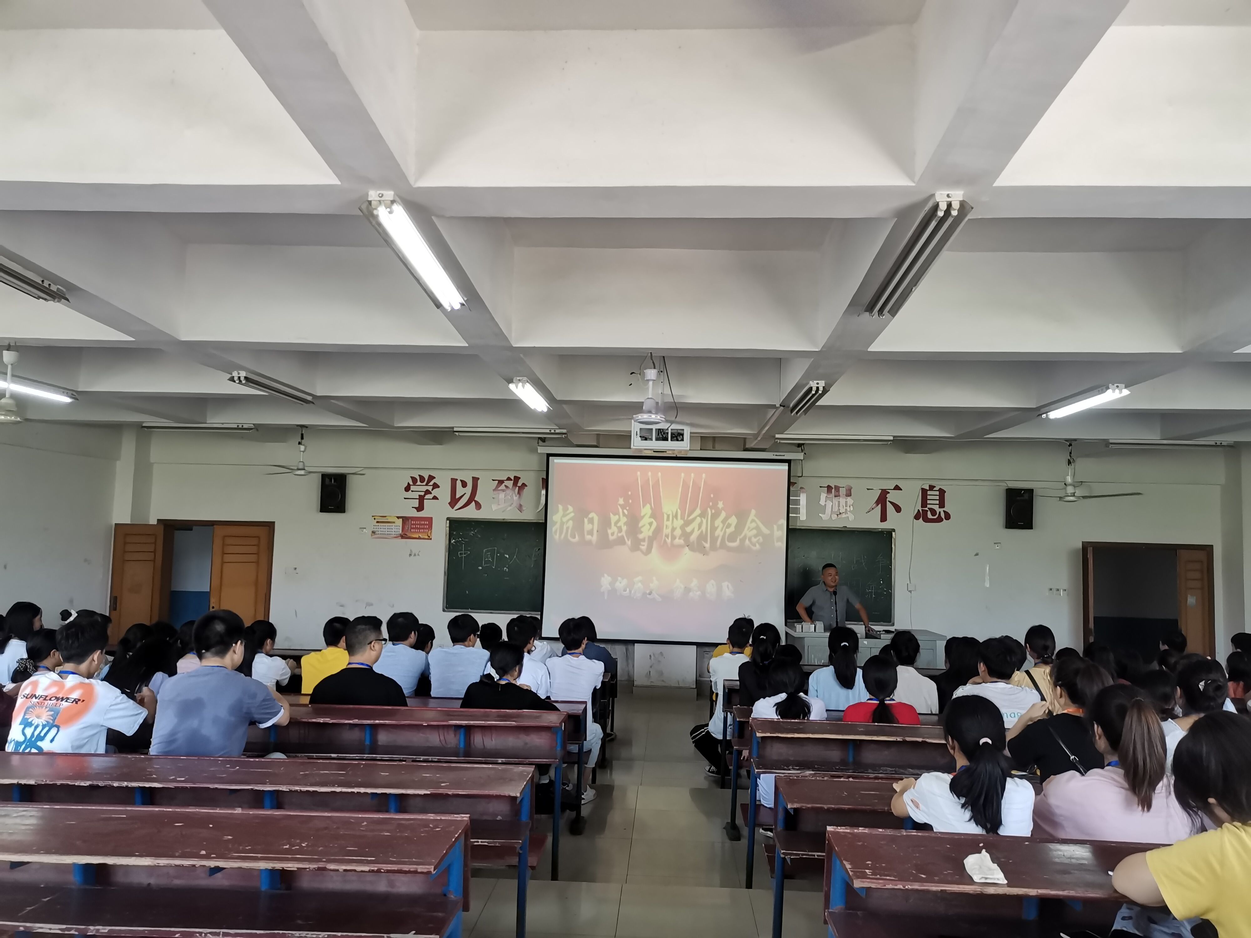 为了纪念抗日战争胜利75周年,牢记历史,勿忘国耻、缅怀革命先烈的丰功伟绩、纪念抗日战争中英勇牺牲的先烈们,娄底职业技术学院团学委于9月3日在主教楼310教室举行抗日胜利纪念日活动。