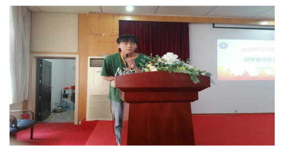 随后,主持人刘凯豪介绍了本次大会的流程,同时提出团学委今后的工作方向,更为团学委全体干事树立工作信心。新学期,新面貌,此次会议,不仅为加深全体干事成员对部门乃至整个团学委这个大家庭的认识及责任感,更是为了促进各部门与二级学院和协会之间的友好关系,共同发展,共同进步。会议进行下一项,18级干部代表学社联副主席石泽进行发言,从纳新和协会换届两方面展开了讲话,提出各组织全力为迎新做准备,协会需做好换届工作并积极开展活动。