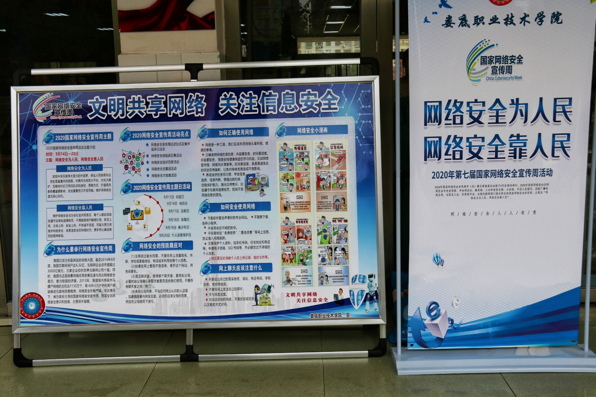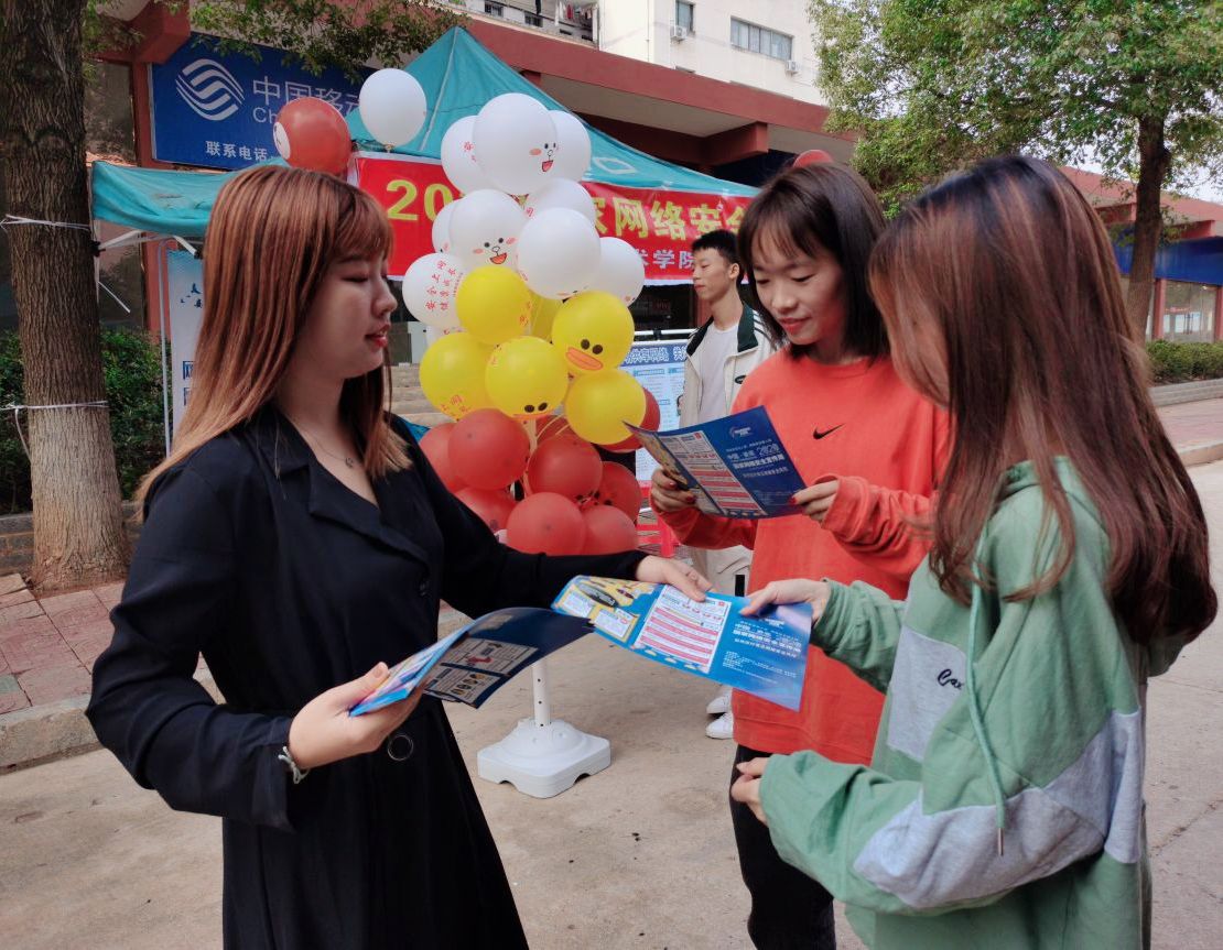为积极响应2020年第七届国家网络安全宣传周活动,提升学生们网络安全意识,了解和掌握网络安全防范方法意义重大。9月19日上午我校校团委在学校食堂门口开展网络安全宣传周活动。本次活动校团委全体干事参与。