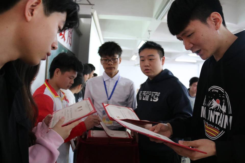很快就到仪式最重要的时刻了,由游骏老师和李景亮老师为18、19级协会会长、主席团以及各部门部长和副部授牌。所有人接过授予的聘书,心中充满着骄傲,眼中闪烁着光芒,深深感受到自己坚持与努力都是值得的。整个授牌过程庄重、严肃,干部们朝气满怀、斗志昂扬地接受这一光荣的使命。