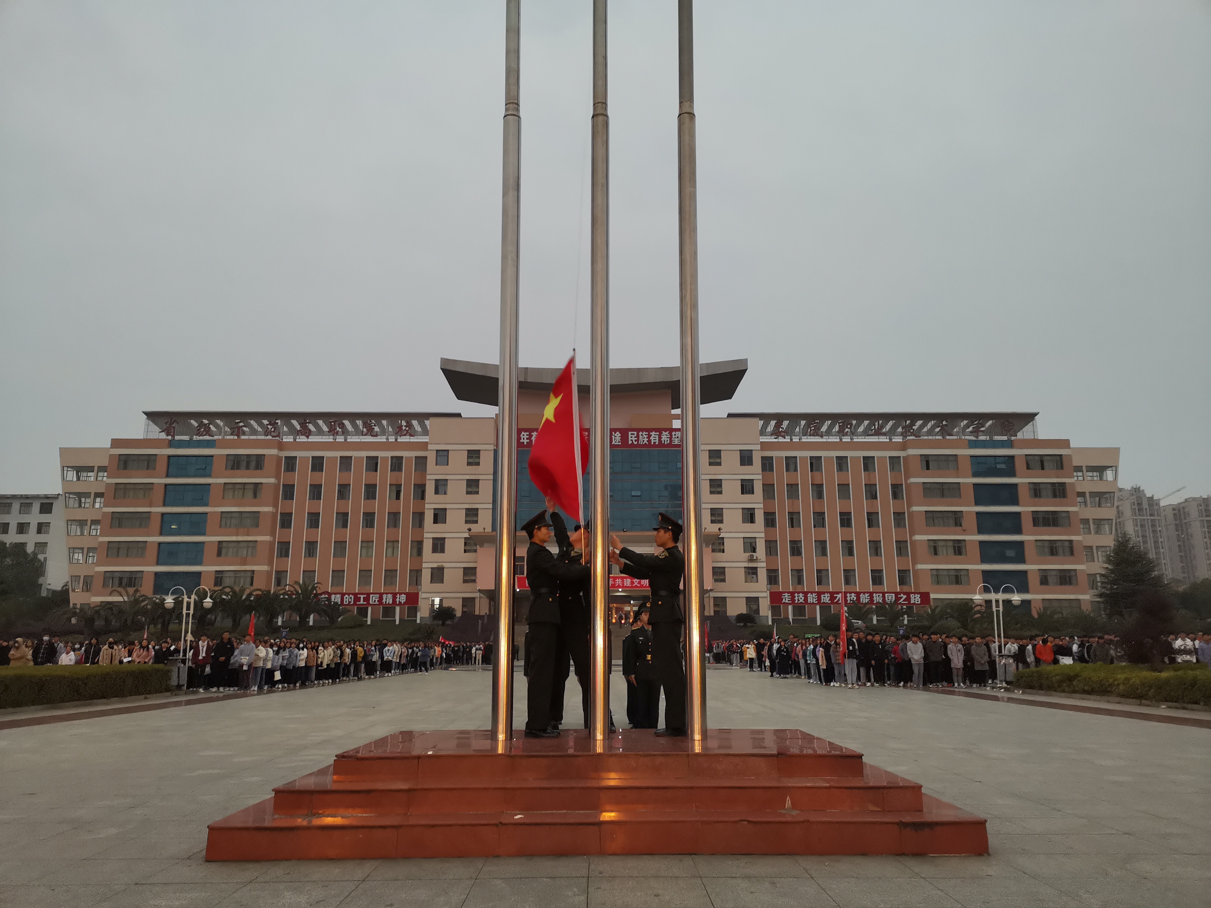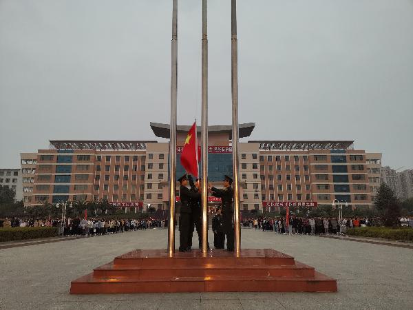 11月30日早晨,娄底职业技术学院全体师生又相聚于文化广场上,迎着冬日里的寒风举行了每周一次的升旗仪式。