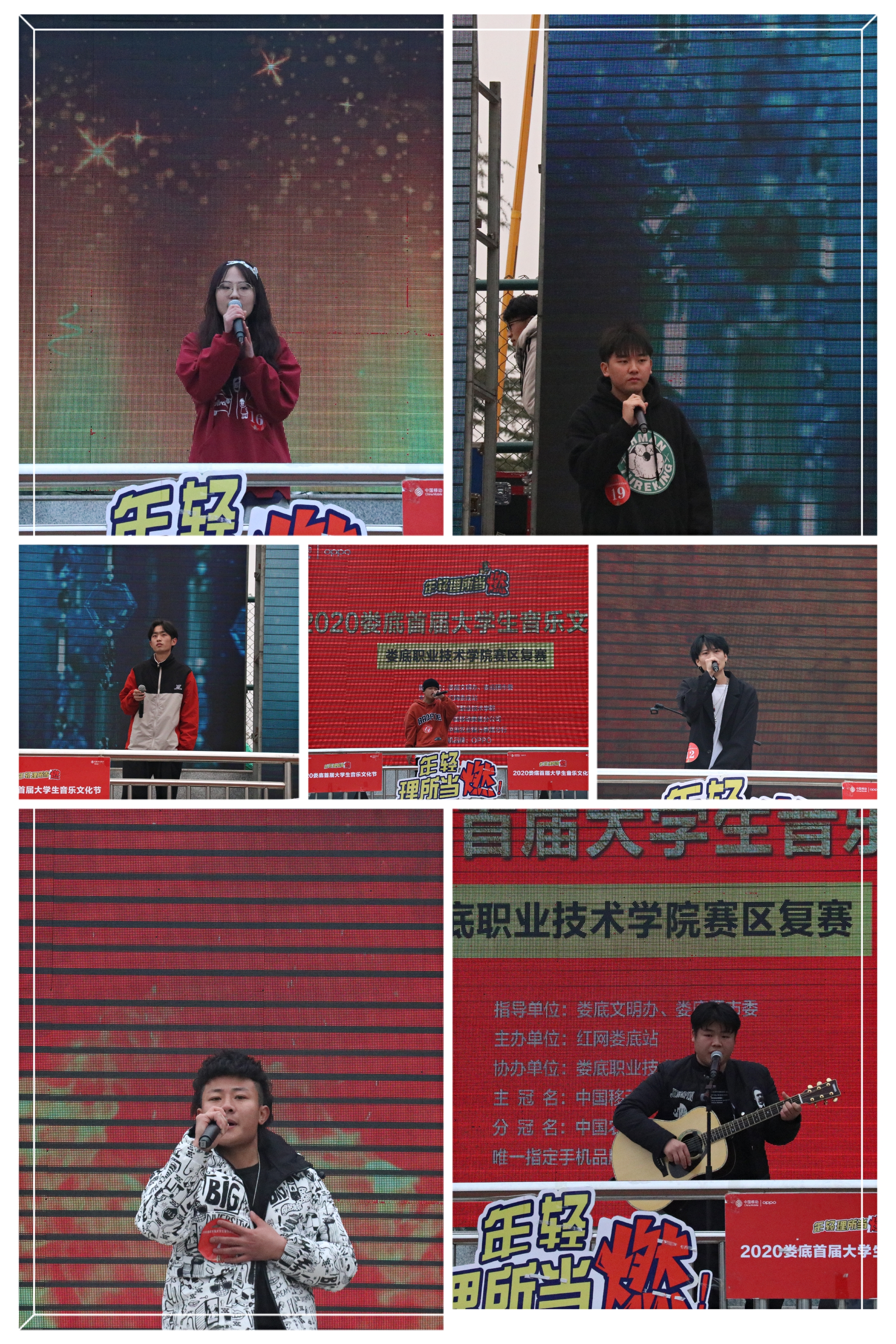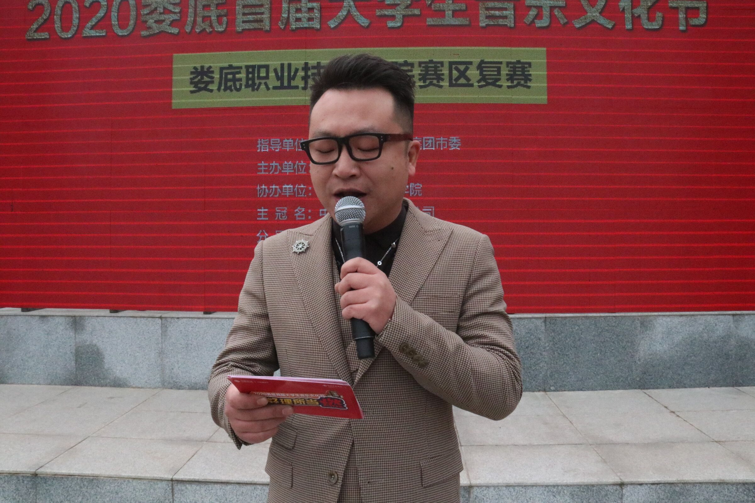 生活“音”爱而乐,“音”爱而美!为了提高大学生的文艺水平,彰显当代大学生积极向上的精神风貌,丰富大学生的课余娱乐活动。由红网娄底站主办,娄底职业技术学院协办的“2020年娄底首届大学生校园文化节”娄底职业技术学院赛区复赛在2020年12月23日2点整于职院田径场隆重举行!出席本次大赛的评委为知名乐评人 Jack老师、流行演唱专业导师 李佳维、紫外线音乐职院校区校长 刘巍、娄底职业技术学院宣副部长部长 张波。此次活动由彭书姿、夏源瑾主持。
