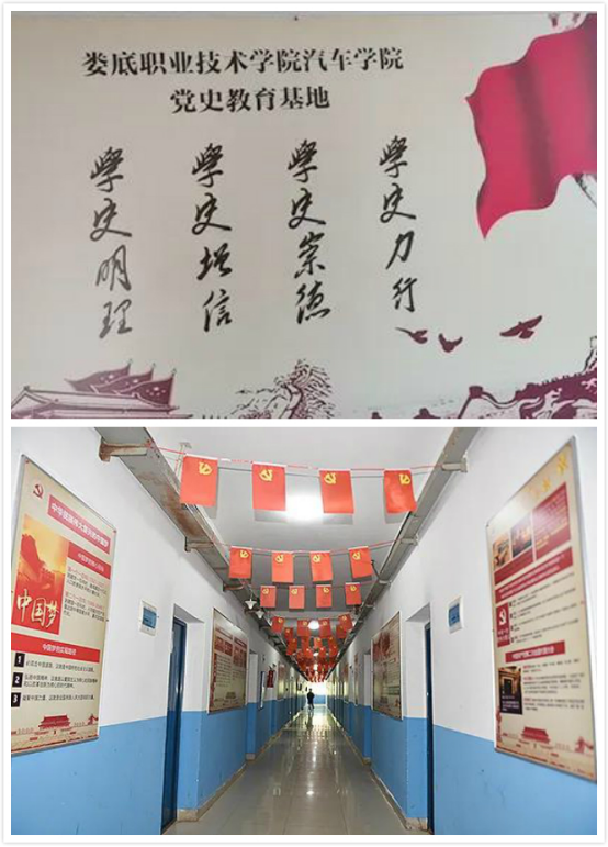 为庆祝中国共产党成立100周年,深入学习贯彻习近平总书记在党史学习教育动员大会上的重要讲话和在湖南考察时的重要指示精神,开展红色教育,传承红色基因,培育时代新人,汽车学院在第14栋学生公寓一楼建设党史教育基地,从“新民主主义革命时期”、“社会主义革命和建设时期”、“改革开放和社会主义现代化建设新时期”三部分描述中国共产党的光辉历史,学生自主设计,制作了21块宣传展板,自己动手上墙布置,建设了一条“红色走廊”。从学生会干部中前期召集培训了4名讲解员,每周四下午向全校开放,接待团队参观学习。