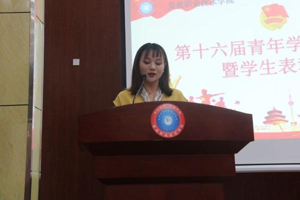 团委书记石磊对第十六届青年学习节活动开展情况进行总结,学工处处长李规宣读《娄底职业技术学院关于表彰2019-2020学年度先进班级和优秀个人的决定》,对学校优秀班级、优秀团支部、优秀个人进行了表彰。五四红旗团总支代表-商学院团总支书记胡婷发言。