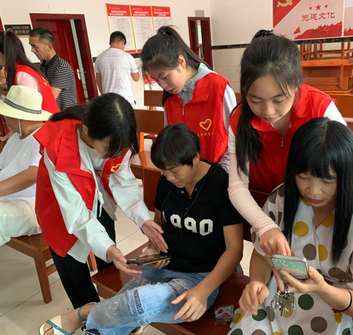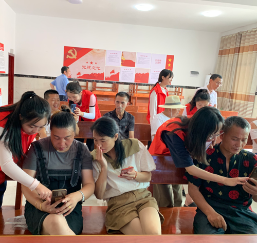 打扫完卫生后,志愿者们继续开展志愿服务活动,他们为村民们宣传党的二十大精神,进一步提升广大群众的政治素质和理论素养。志愿者唐湘君通过图片和视频向村民宣传了关于二十大精神的内涵,呼吁大家积极学习并践行二十大精神,让更多的人了解二十大精神的内容。志愿者贺靓和其他几位志愿者们去到每个村民家里,引导村民们在手机上做了一些有关二十大精神的小知识问答题,增加对党二十大精神的理解,更好的以实际行动来践行党的二十大精神 。