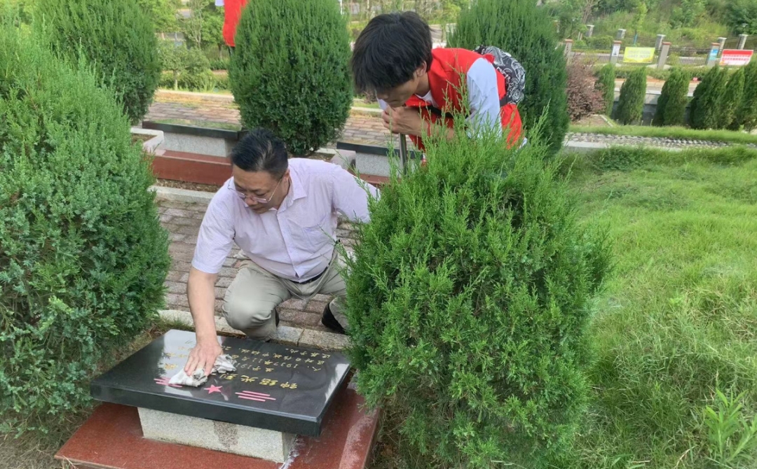 商学院“学习二十大红色永传承”暑期三下乡社会实践团队去到了娄底市烈士陵园进行参观学习。为表达对革命先烈的敬仰,全体师生整装列队肃立在烈士纪念碑前默哀,志愿者们静静追思,在墓碑前深深的鞠了三躬,随后轻轻的擦去墓碑上的灰尘,弯腰拾起地上的碎屑。活动结束后,大家纷纷表示,作为新时代的青年应该要铭记历史,不忘使命,深刻领会党的二十大主题,为全面推进中华名族伟大复兴而团结奋斗。