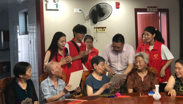 为深入宣传党的二十大精神,弘扬中华民族敬老、爱老的传统美德,实践团队于7月8日前往娄星区康怡养老院开展社会实践活动。活动过程中,志愿者们精心准备了节目并与老人们交流谈心,了解老人们的饮食健康、身体锻炼、日常社交、作息安排等,认真倾听老人们的故事,并为他们定制了个性化的日常生活安排,在和老人们交流中,志愿者们也给他们普及了一些有关电信诈骗的知识。整个养老院萦绕着爱的暖流,场面温馨感人,在志愿者们有爱心的帮助下,老人们充分体会到来自新一代的关爱和温暖。