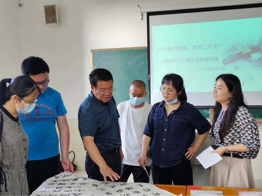 为积极弘扬中华民族优秀传统文化,鼓励当代大学生学习书法艺术。5月19日,由娄底职业技术学院团委主办,艺术设计学院团总支承办开展第十八届学习节“艺笔书经典,学习二十大”书法比赛。评委老师有艺术设计学院院长夏高彦、学院书记曾晓杰、学工副院长张雯宇,贺莹晶老师、周治中老师、万群峰老师。