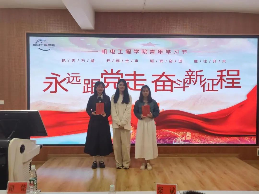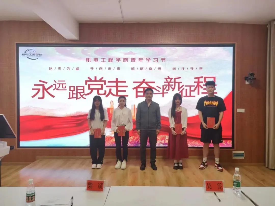 2023年5月12日19点,第十八届青年学习节“永远跟党走,奋斗新征程”演讲比赛在创客中心举行,本次比赛的评委老师为机电工程学院柴斌副院长、吴凭老师、彭鑫老师和艺术设计学院谢梵老师,由21级机制2班周权和22级机电1班周哲吉主持。比赛过程中,每位选手激情演讲,认真地分享自己对书本的感悟。