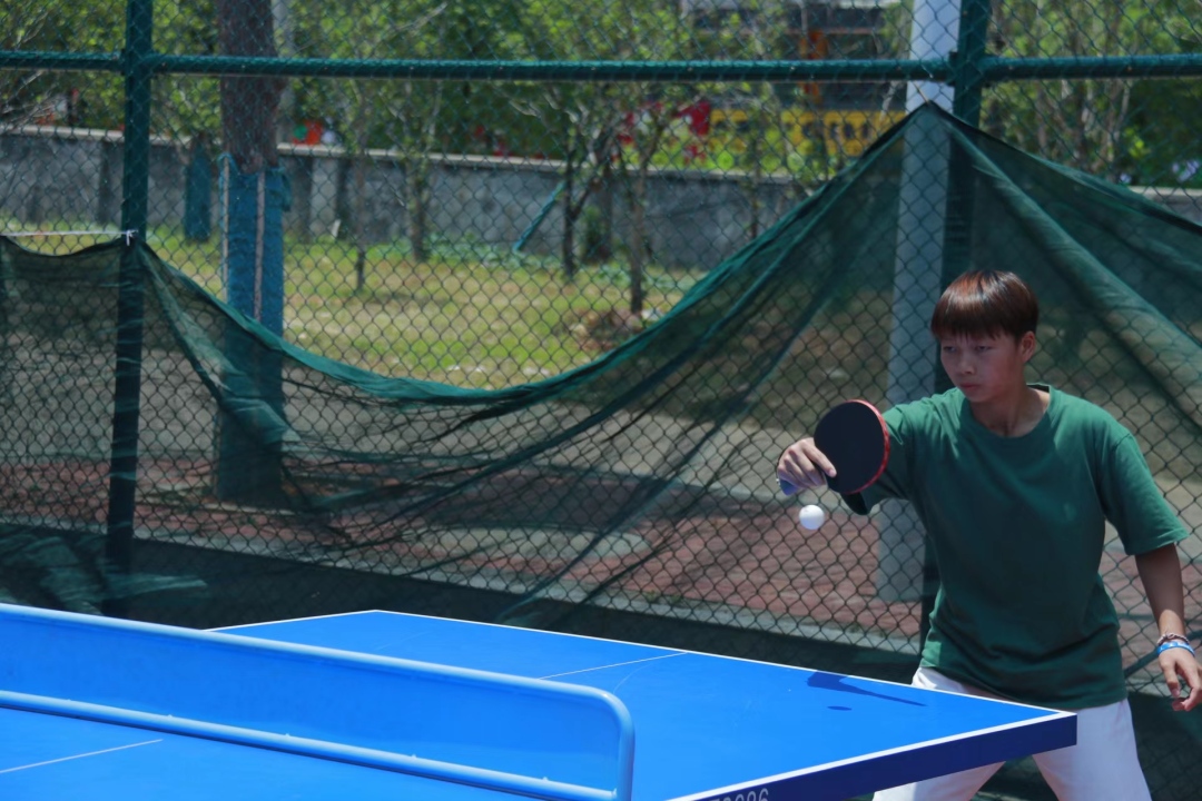 上旋,搓球,抢攻,扣杀!比赛现场气氛热烈,精彩纷呈,选手们各显身手,奋勇争先。赛场上一个个奋力拼搏的身影,赢得了观众们的阵阵喝彩。选手们挥动着手中的球拍,挥洒着身体上的汗水,这才是青春的“舞姿“!