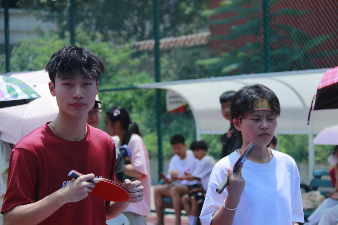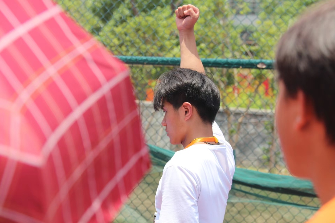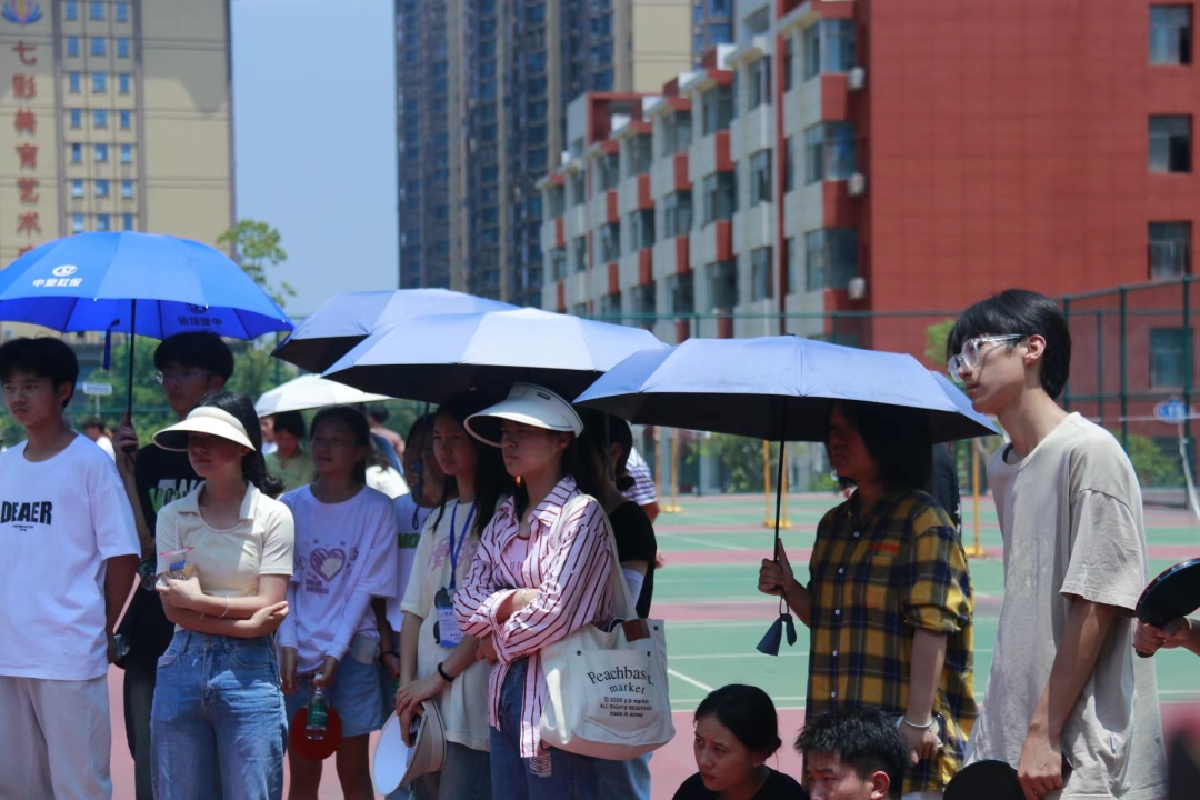 太阳虽然毒辣,但同学们的热情依旧高涨,呐喊声不断,像是在与它宣战!
