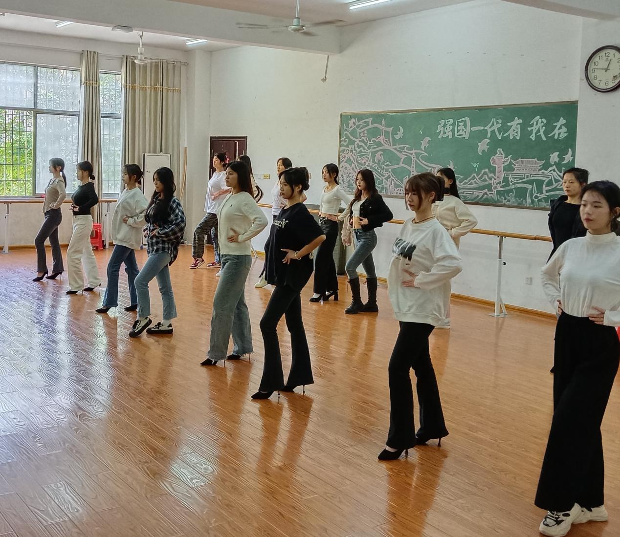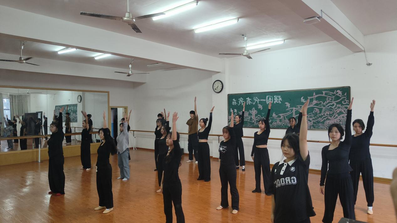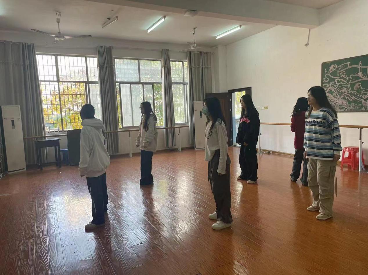 2023年11月初至2023年12月28日在娄底职业技术学院医学院1-601形体室由指导老师李娜老师的带领下进行了4次训练。