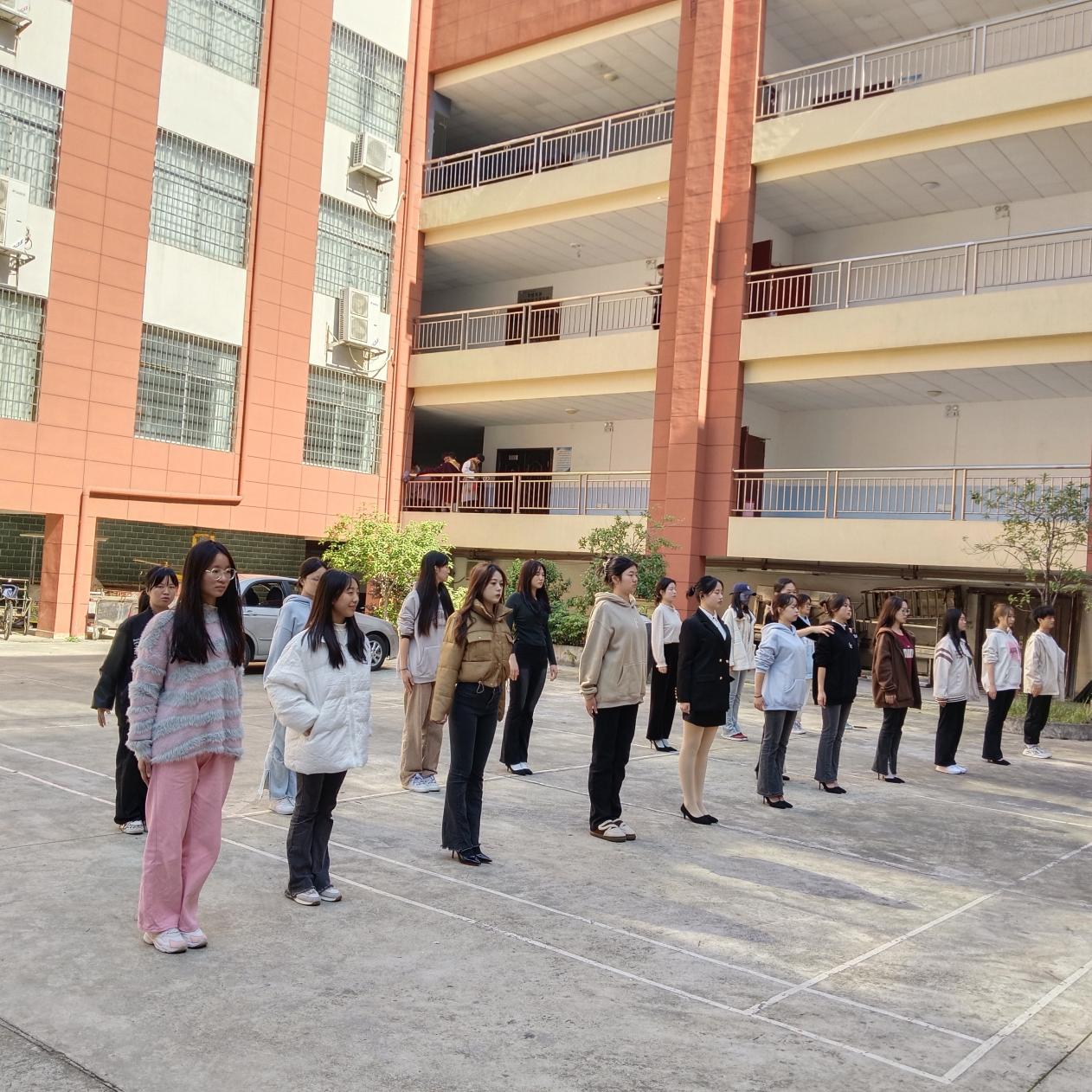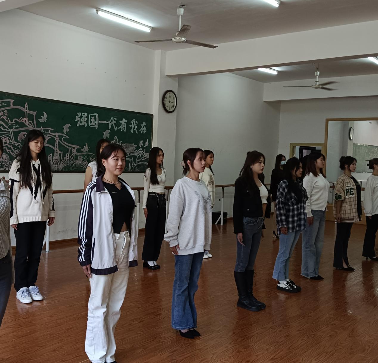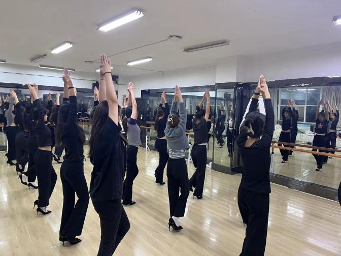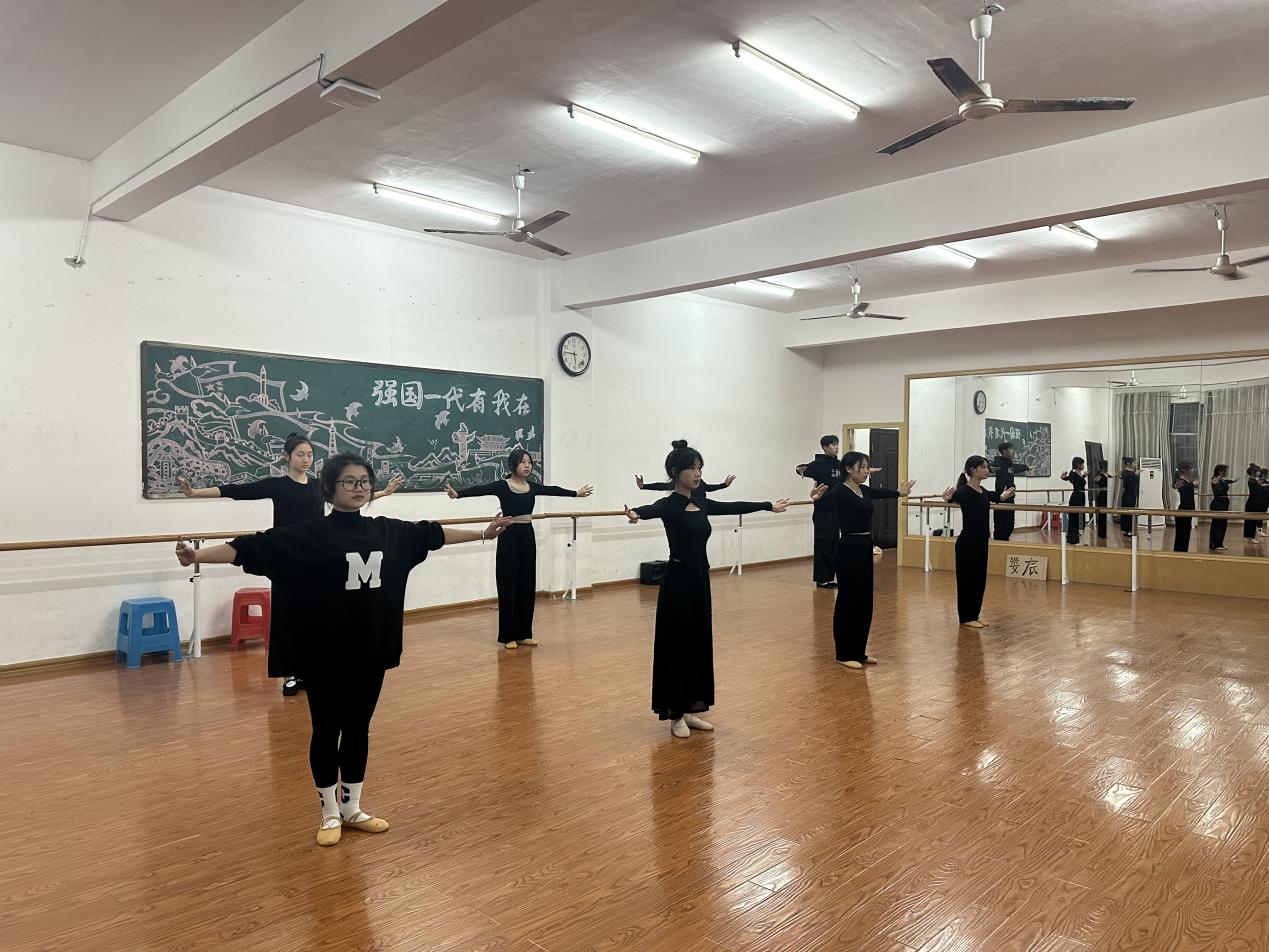 2023年11月初至2023年12月28日在娄底职业技术学院医学院1-601形体室由指导老师李娜老师的带领下进行了4次训练。