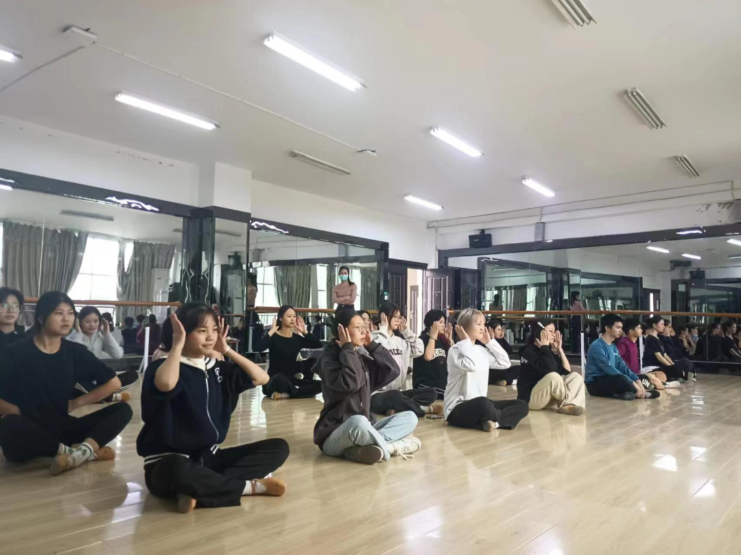 开课内容主要教我们如何正确热身、基本功和情绪的表达,李娜老师通过自身演示,将基本功如何做正确做优美细致讲解,通过听音乐的节奏来正确的表达情绪。同学们热情好学,有不懂的地方都积极的提出问题,李娜老师认真细致的回答,同学们的积极配合受到李娜老师的表扬。