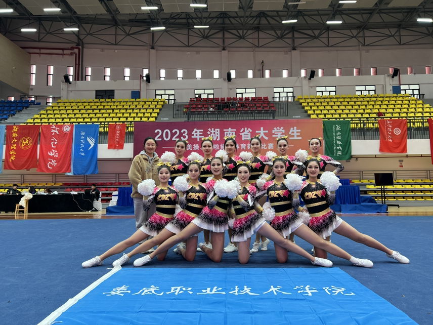 啦啦操协会代表娄底市参加了湖南省全名健身啦啦操宝贝比赛荣获第四名的好成绩还参加了 湖南省啦啦操锦标赛荣获第四名的好成绩 虽然比赛成绩不那么近人意,但是每个人都很努力,每天不停的在训练,同学们都是从没有基础到熟练的,所以没有什么是不可能的。台上两分钟,台下十年功。 为了站在比赛的舞台上展示这一支舞蹈,同学们付出了很多努力,很多汗水和时间。有人说 青春是轰轰烈烈的,轰轰烈烈这四个字一听就是一个团伙作案,这场比赛在他们的青春里刻下了一抹痕迹,那是青春的记忆。