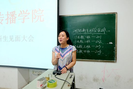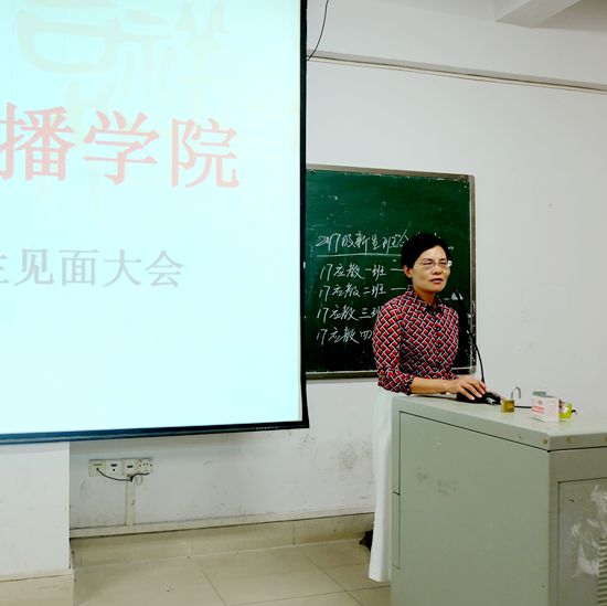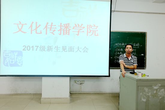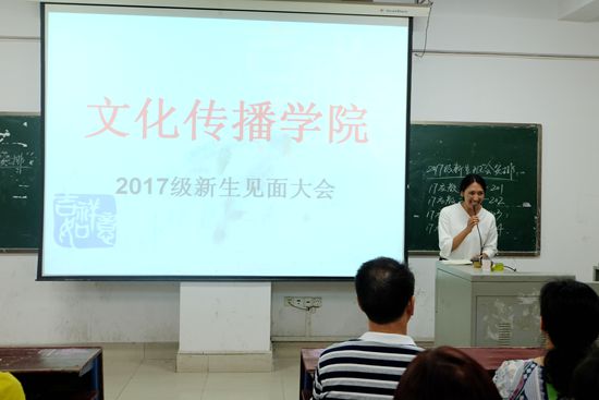 9月10日晚19:00,文化传播学院于主教楼210举行2017级新生见面大会,文化传播学院院长刘燕,学工副院长贺建良,教学副院长肖付良,辅导员刘露,黄静以及2017级全体新生参加,会议由学生会干部永措主持。