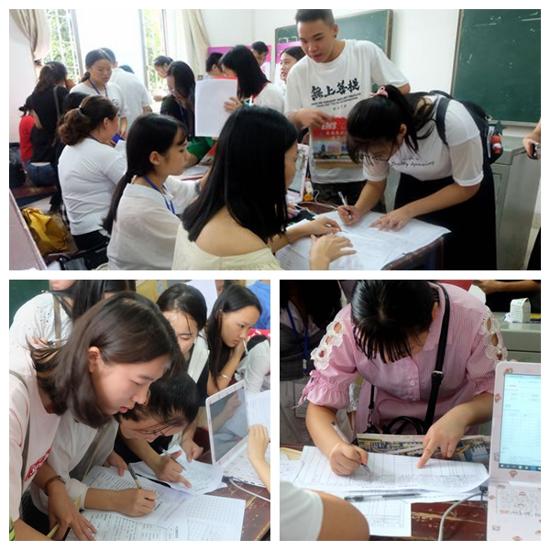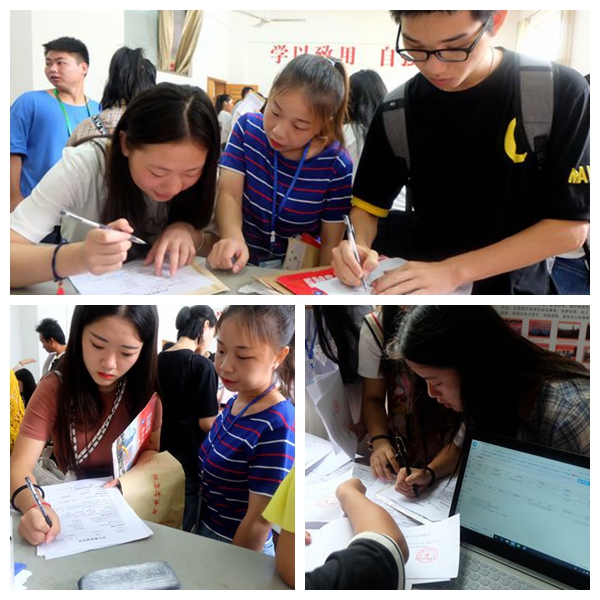 文化传播学院院长刘燕,教学副院长肖付良,学工副院长贺建良,学工干事胡勇为,辅导员老师及学生会一早就到了学院报名点进行部署和分工,每位成员都坚守在自己的岗位上——引导学生到报名点报名,分配宿舍,发放和领取新生相关资料,带领新生缴费、办理校园一卡通和热水卡、领取军训服装和床上用品,搬运行李。迎新工作如火如荼,到处都是忙碌的身影,参与迎新的工作人员不厌其烦地回答着学弟学妹们提出的各种问题,在师生的共同努力下,迎新工作有了一个良好的开头。