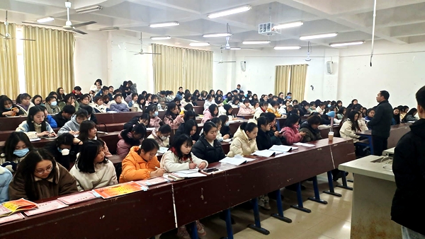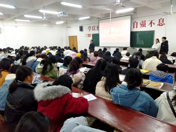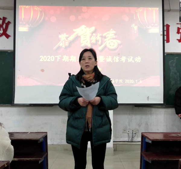 大会第一项,肖院长针对即将来临的期末考试发表讲话:1、认真对待期末考试并有针对性的复习,提高学习效率;2、按时完成作业,积极回答问题,重视平时成绩的重要性;3、考试时带齐学生证和身份证,二者缺一不可;4、遵守考场纪律,不舞弊;5、试卷不留空白,字数达标;6、考试守时,切忌迟到。讲到最后,肖院长用真挚的言语为即将进行考试的同学们鼓舞呐喊,祝愿同学们能取得理想的成绩。