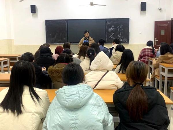 随后团支书通过播放PPT告诉同学们要做一名诚信学生,提高自身修养,正所谓“分数诚可贵,奖励价更高,若为诚信敌,两者皆可抛”。从而提醒同学们,要以诚信的态度对待每一场考试,考出自己的真实水平。