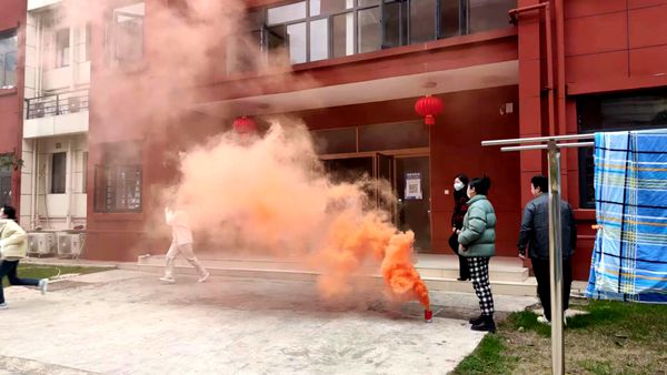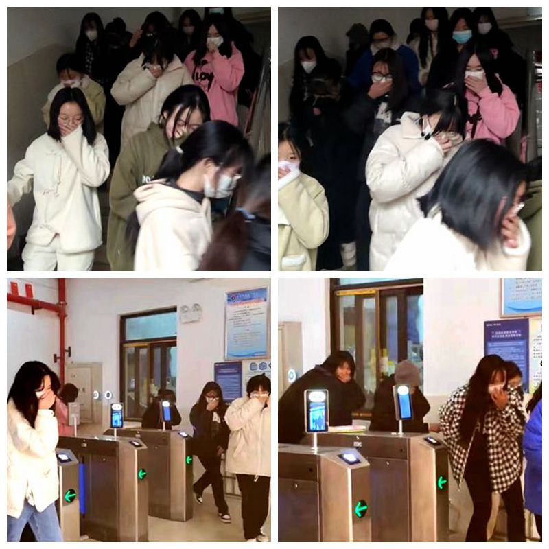 活动前,急促的警报声将学生带入了模拟学校发生火灾的情境中。谢花萍院长宣布应急演练开始,并向学生发布掩住口鼻、弯腰前行、有序、小跑疏散指令。
