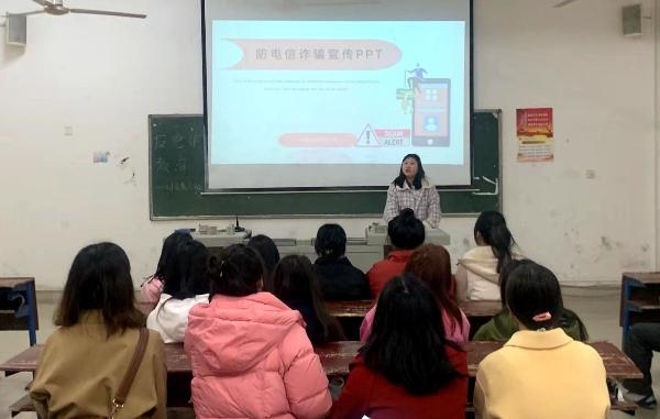 首先,辅导员通过PPT了解什么是电信诈骗、电信诈骗的常见形式、如何识别防范电信诈骗、上当后的补救措施四个方面进行深入详细的讲解,让同学们充分了解什么是网络诈骗,提高自我防范意识。