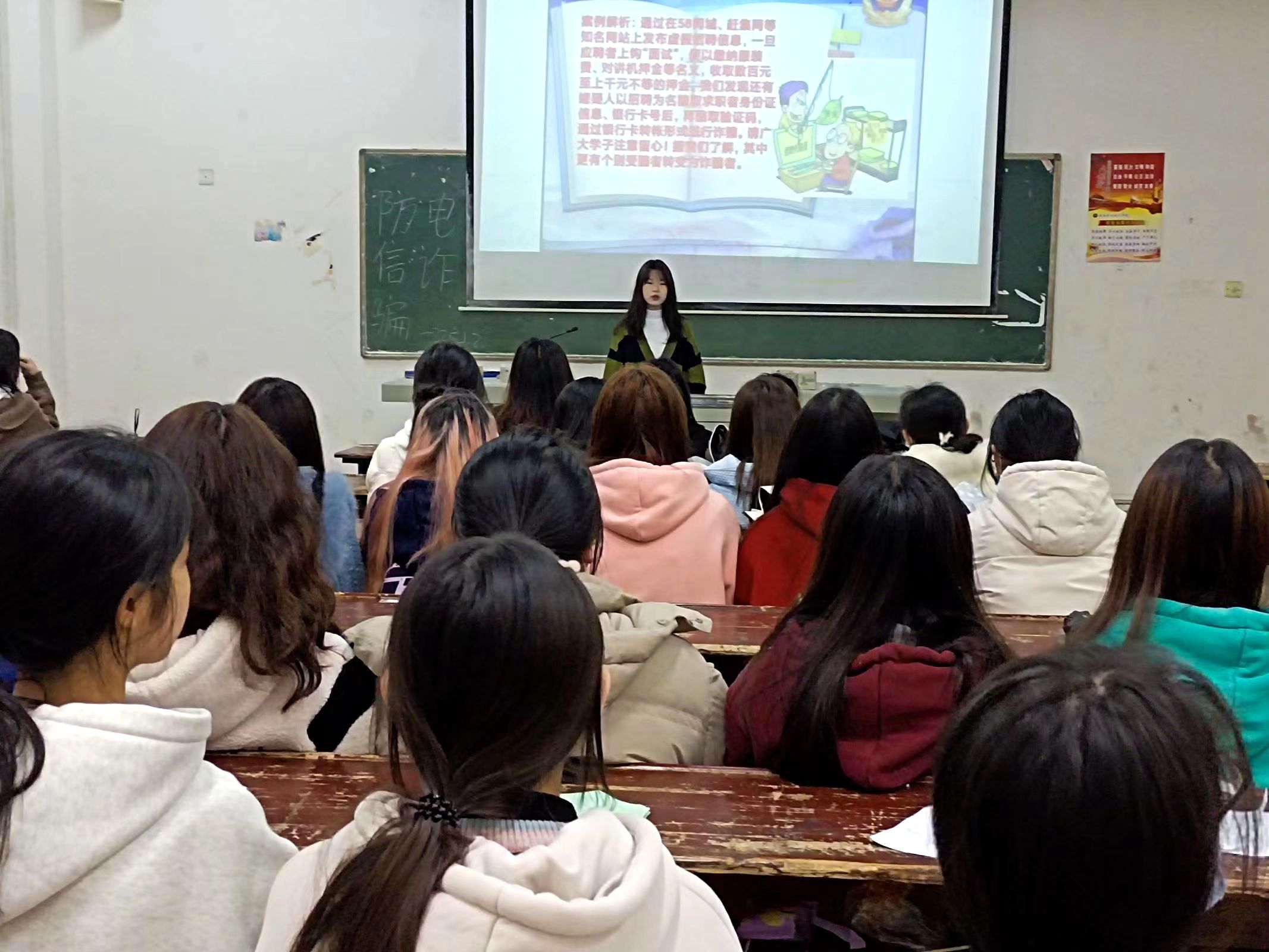其次,团支书向同学们讲述了有关网络诈骗的案列,如钓鱼网站诈骗,切实增强了同学们在生活中遇到诈骗时灵活应对的防范意识,提高了他们各方面自我预防、自我保护、自我应对能力。