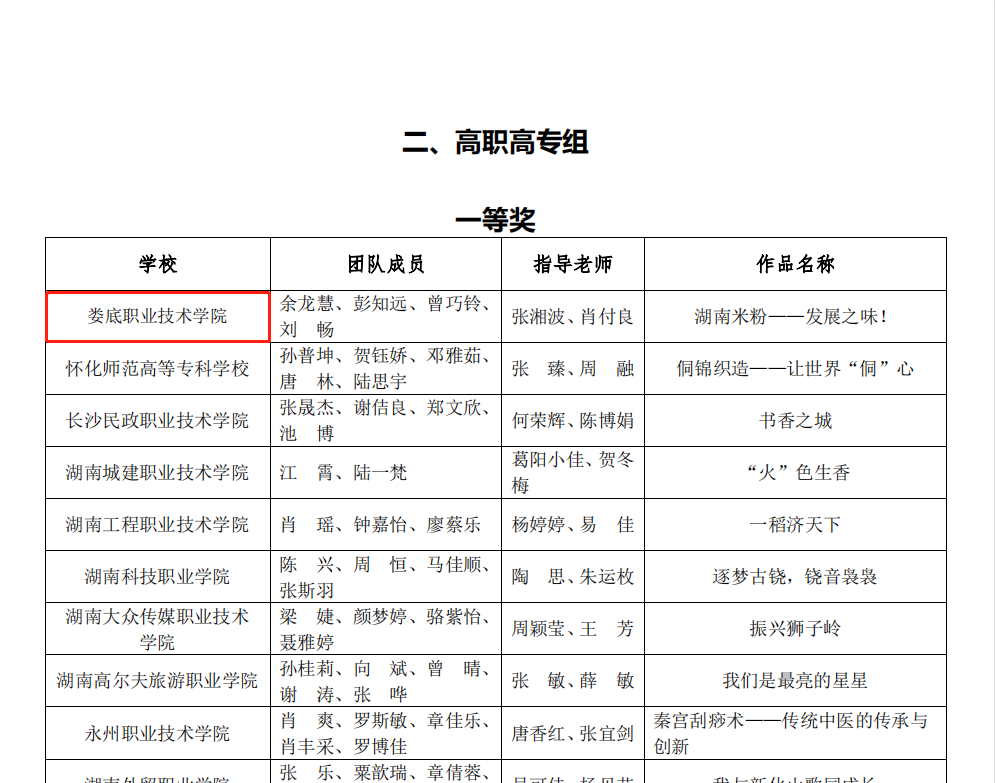 近日,在湖南省大学生学习贯彻党的二十大精神——“用英语讲好湖南故事”短视频大赛中,娄底职业技术学院文化传播学院选送的作品《湖南米粉——发展之味!》(团队成员:余龙慧、彭知远、曾巧铃、刘畅;指导老师:张湘波、肖付良)荣获“高职高专组一等奖”。同时,娄底职业技术学院被评选为大赛“优秀组织单位”。