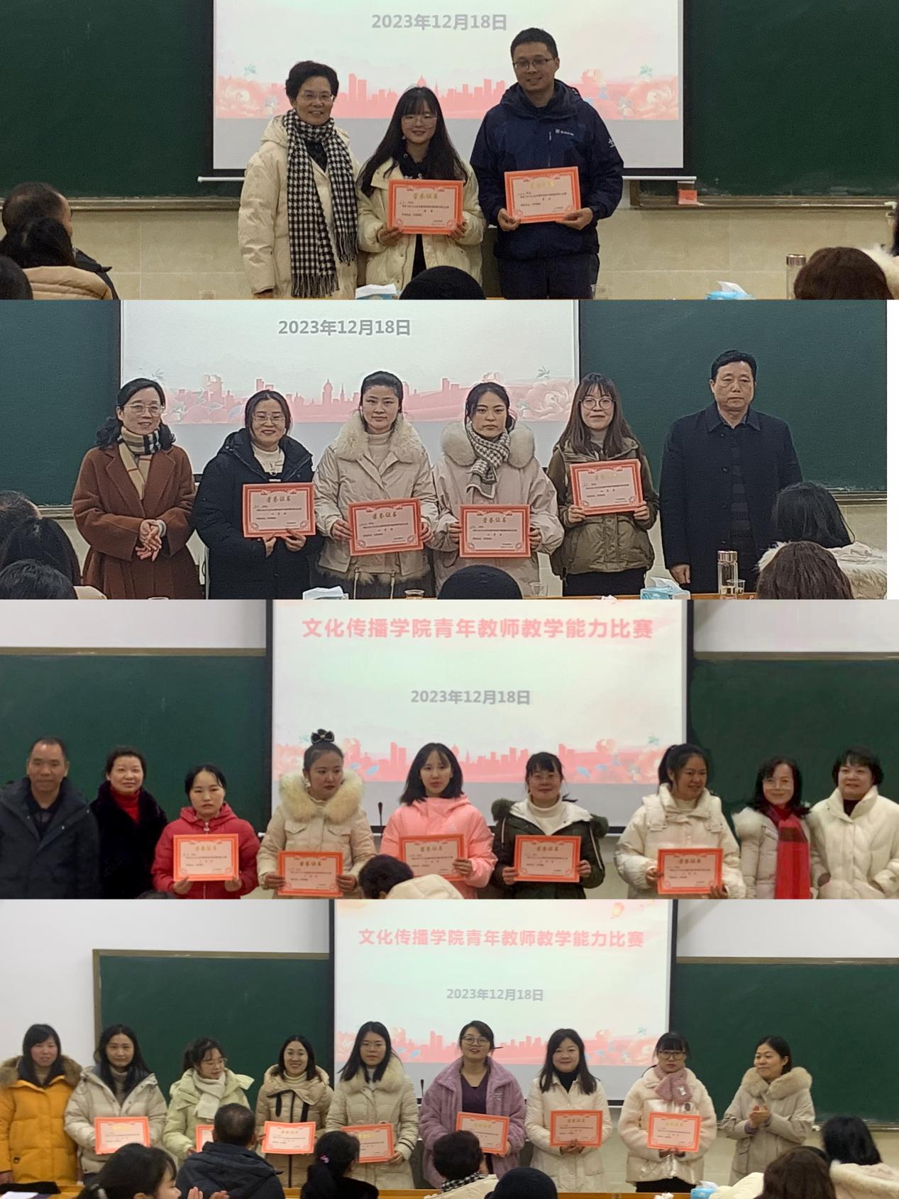 经过紧张精彩的角逐和评委老师的认真评审,张湘波、吴琴获一等奖,章威、庄梦思、龙金林、吴思获二等奖,梁烨、胡勇为、彭礼智、彭维、刘容梅、戴倩获三等奖,刘霖、邱汝慧、彭佳、杨娉、彭鹃、卢玮、吕邹沁获优胜奖,校督导团专家和院领导班子为获奖选手颁奖。