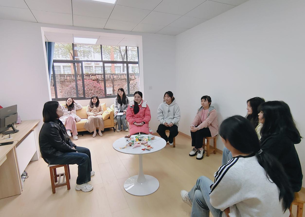 为了减轻我院同学的学业、人际关系等压力,提高同学们的心理健康意识,同时弘扬优秀传统文化,让学生们近距离感受非遗剪纸艺术的独特魅力,展示文传学生优秀成果、释放压力、放松心情。文化传播学院于2024年3月20日上午10点在1栋社区心理室组织22级、23级8名同学开展“一院一幸福”特色活动。本次活动由文化传播学院心教专干谢楚老师组织开展,由心教中心部长周钰希主持,参加本次活动的还有文化传播学院学工副院长谢花萍和辅导员刘奕奕。
