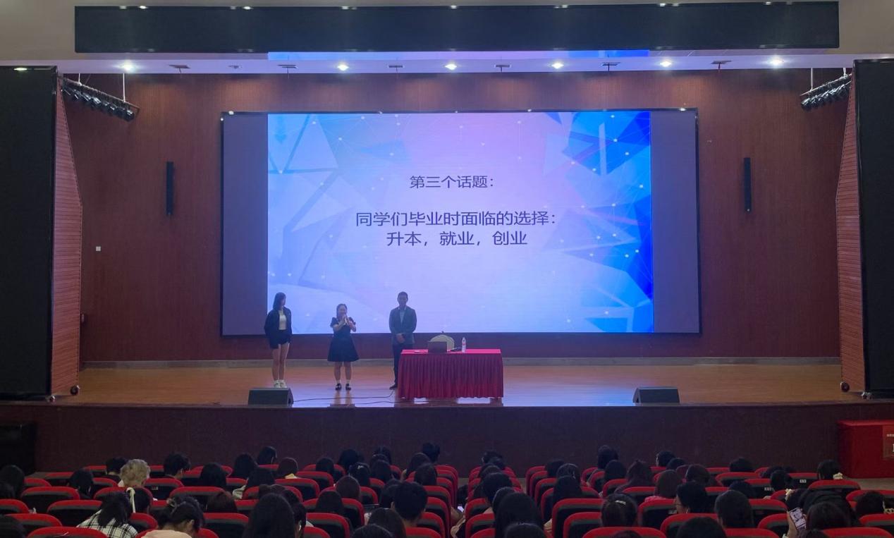 讲座第三项,邀请学院婴幼儿托育服务与管理专业的21届学长吴伽铭分享自己现在的工作状态与收获。施老师询问同学们毕业时面临的选择: 升学、就业、创业。随后邀请三名学生分享自己的以后打算和安排,耐心给予一一回答与建议。建议同学们将长远职业目标分解为短期可实现的目标,例如毕业后先获取实习经验,然后逐步实现更高层次的职业目标。鼓励同学们要早规划、早准备,不断提升自己的综合素质和竞争力,为未来的职业发展打下坚实的基础,期待在座的同学们在未来闯下一片属于自己的天空!
