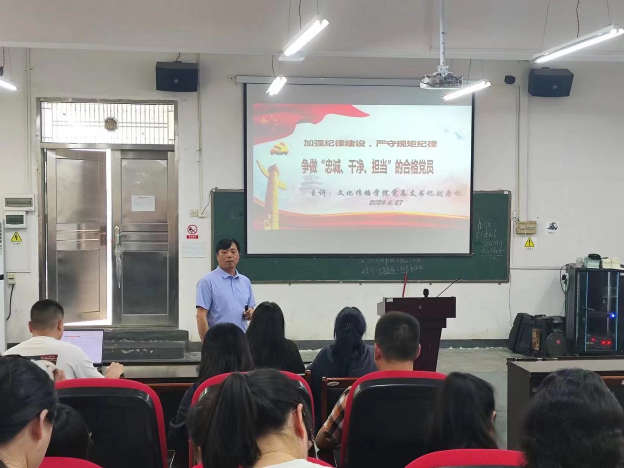 为深入贯彻党的纪律建设要求,加强我院党员的党纪意识,提高党性修养,文化传播学院于2024年6月27日下午16点30在北科楼101隆重召开党纪学习党员大会。参与此次大会的有文化传播学院党总支书记刘寿松、教学副院长谢丹、学工副院长谢花萍、文化传播学院党总支全体党员和发展对象,此次会议由文化传播学院党总支书记刘寿松主讲。学院全体党员齐聚一堂,共同参与了这场意义深远的学习活动。