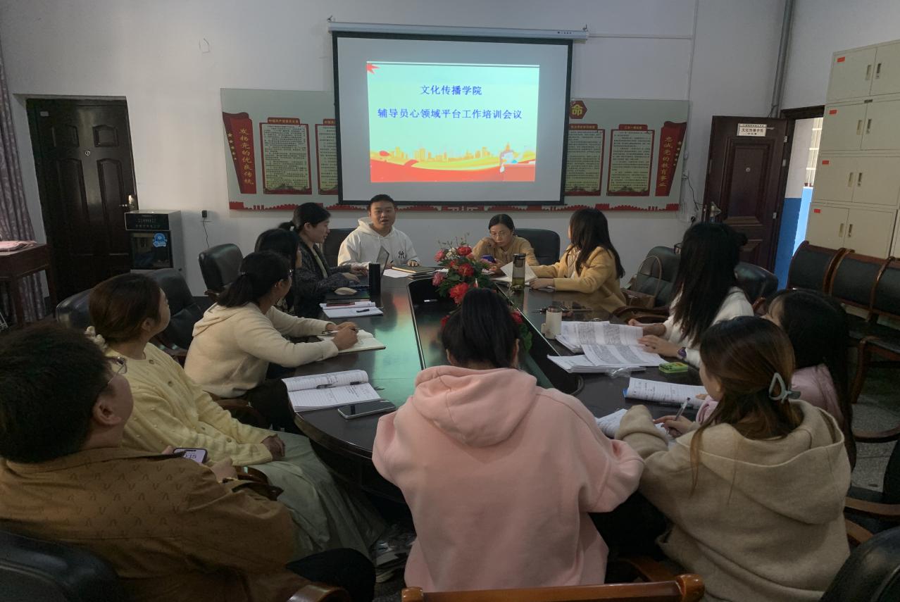 为了全面掌握我院学生的心理健康状况,提升我院心理危机预防与干预的能力,切实做好学生心理健康教育工作,维护校园和谐稳定。文化传播学院于2024年10月31日上午10点在北科技楼209开展辅导员心领域平台工作培训会议,参加此次会议的有心教专干谢楚、学工干事李景亮、周科伶以及学院全体辅导员。本次会议由心教专干谢楚组织开展。