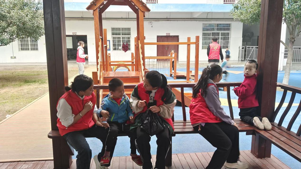 活动当天,志愿者们早早的就集合完毕,统一去往福利院。在福利院工作人员的引导下,她们迅速的融入了小朋友们的世界里。在游戏环节中,志愿者们精心设计了丰富多彩的游戏项目,如丢沙包、123木头人等,这些游戏深受孩子们的喜爱,他们积极踊跃地参与其中尽情放着内心的活力与快乐。每一张小脸上都洋溢着灿烂的笑容,仿佛整个空间都被他们的欢声笑语所填满。