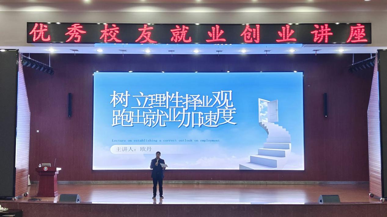 随后,优秀校友欧丹在讲座中分享了的就业创业经验,以及个人的故事和成长历程。强调了在职业生涯初期树立正确就业的重要性,特别是要树立“先就业再择业”的择业观,这有助毕业生更好地了解不同行业的情况、磨炼自己的实际操作能力,逐渐适应职场环境,同时也有助于增强自己的就业竞争力。欧丹学姐通过自己的经历,向学弟学妹们诠释了如何扎根本职岗位、用实干书写担当、推陈出新、绽放异彩,以及如何在职场中不断学习和适应,从而实现个人价值和职业发展。