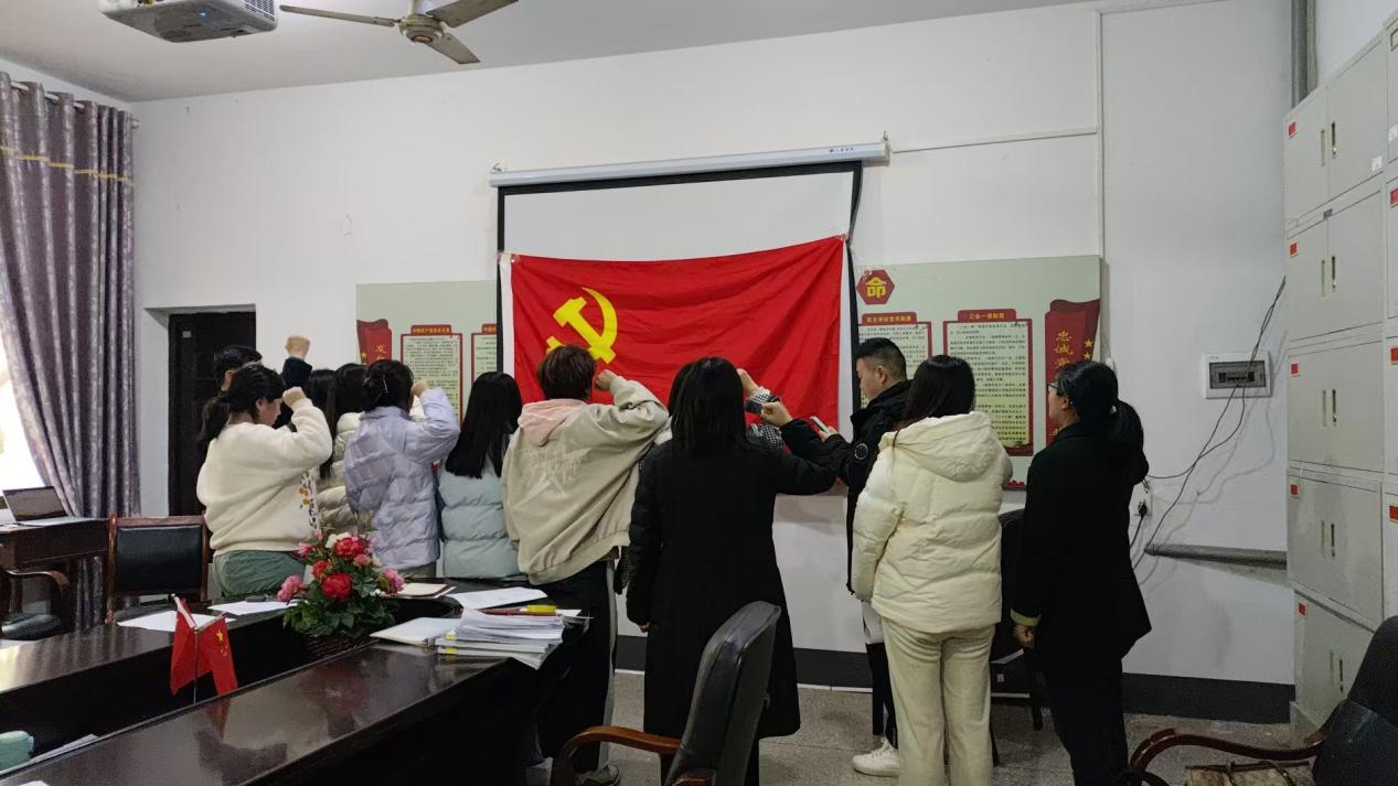 大会最后,各预备党员在学工党支部党员的带领下,郑重举起右臂,在鲜红的党旗下立下了庄严的誓言——为共产主义理想奋斗终生!