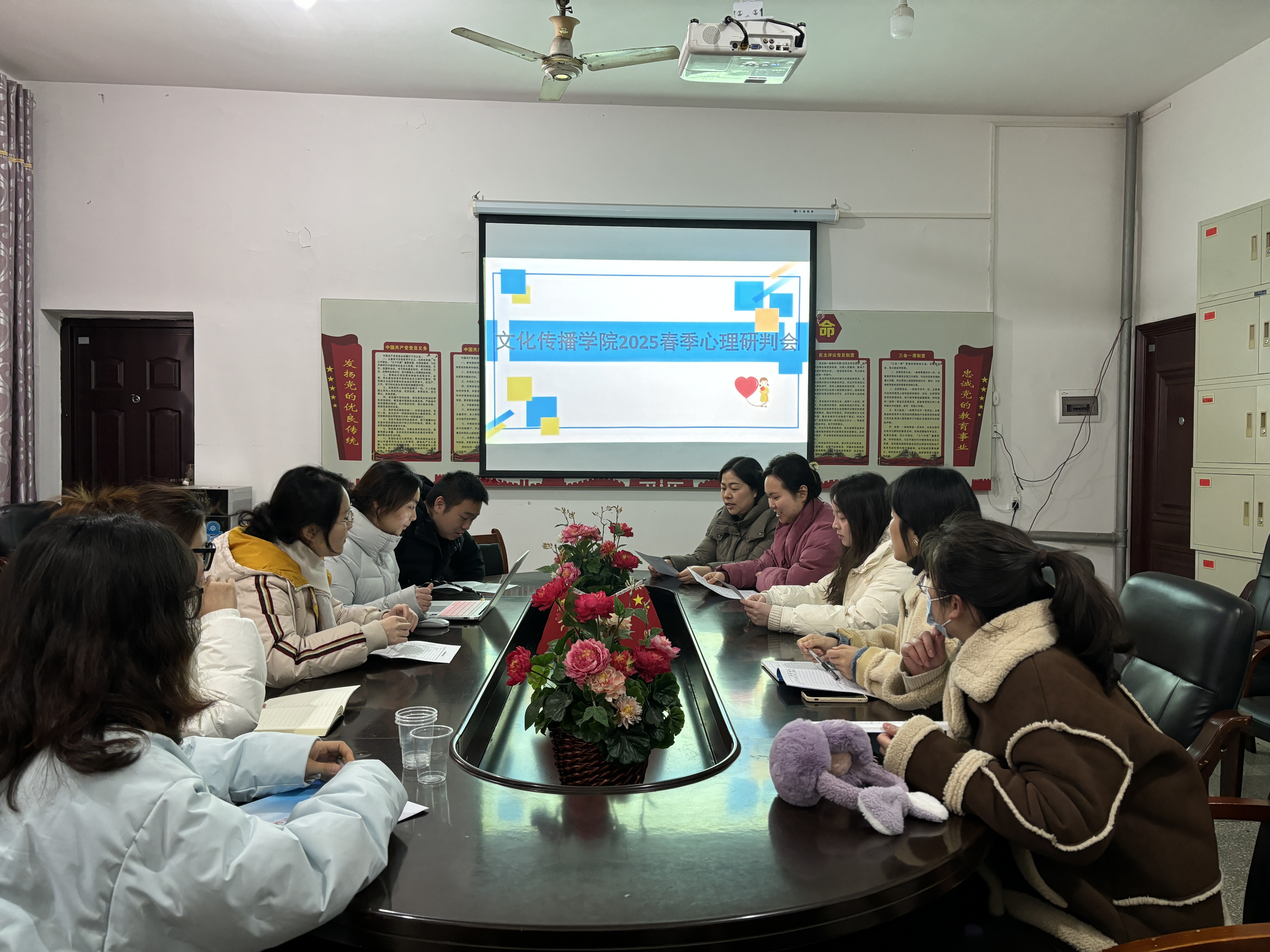 为深入贯彻落实教育部关于高校心理健康教育工作的部署要求,切实保障学生身心健康与校园安全稳定,文化传播学院于2025年3月6日上午10点,在北科楼209组织召开2025年春季学期心理健康安全研判会。此次活动由心教专干朱莉老师主持,文化传播学院学工副院长谢花萍出席会议并讲话,22级、23级、24级辅导员参会。