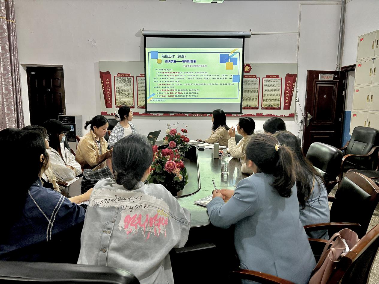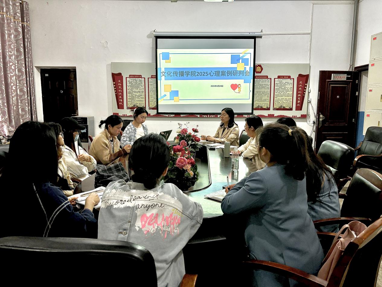 为落实立德树人根本任务,全面分析学生心理健康现状,探讨心理健康教育工作的重点和方向,为学生健康成长、全面发展提供有力支撑,文化传播学院于2025年4月24日下午16:30,在北科楼209组织召开2025心理案例研判会。此次活动由心教专干朱莉主持,文化传播学院学工副院长谢花萍出席会议并讲话,全体辅导员参会。