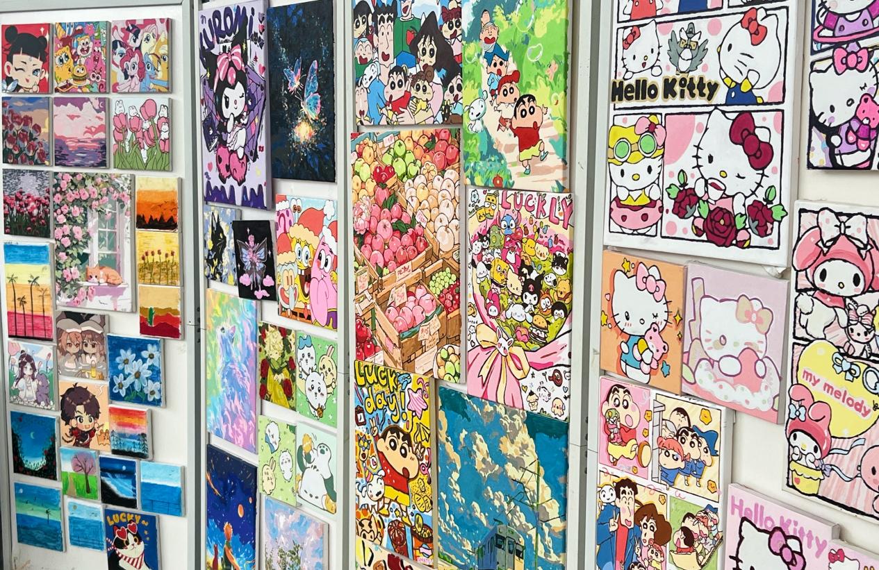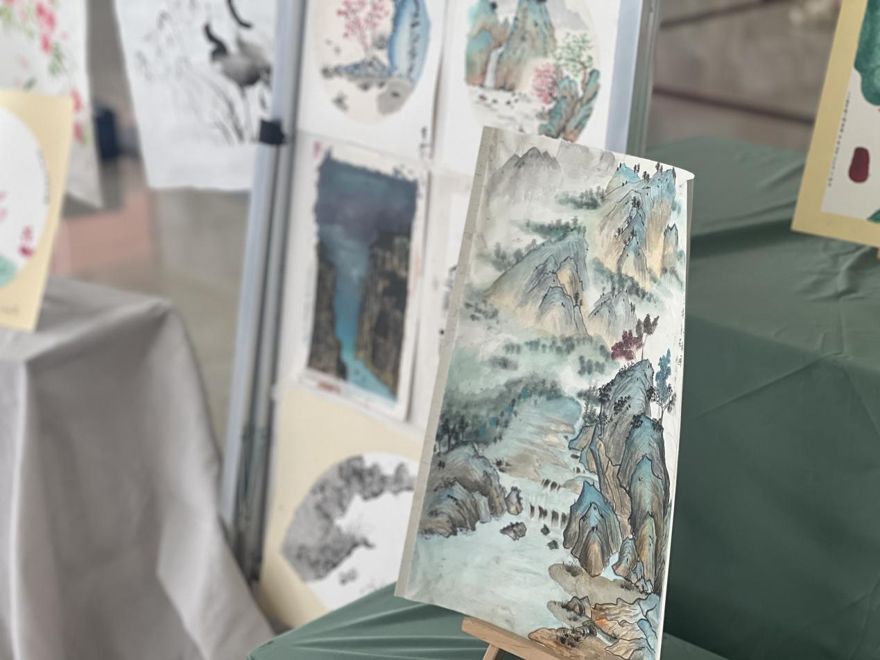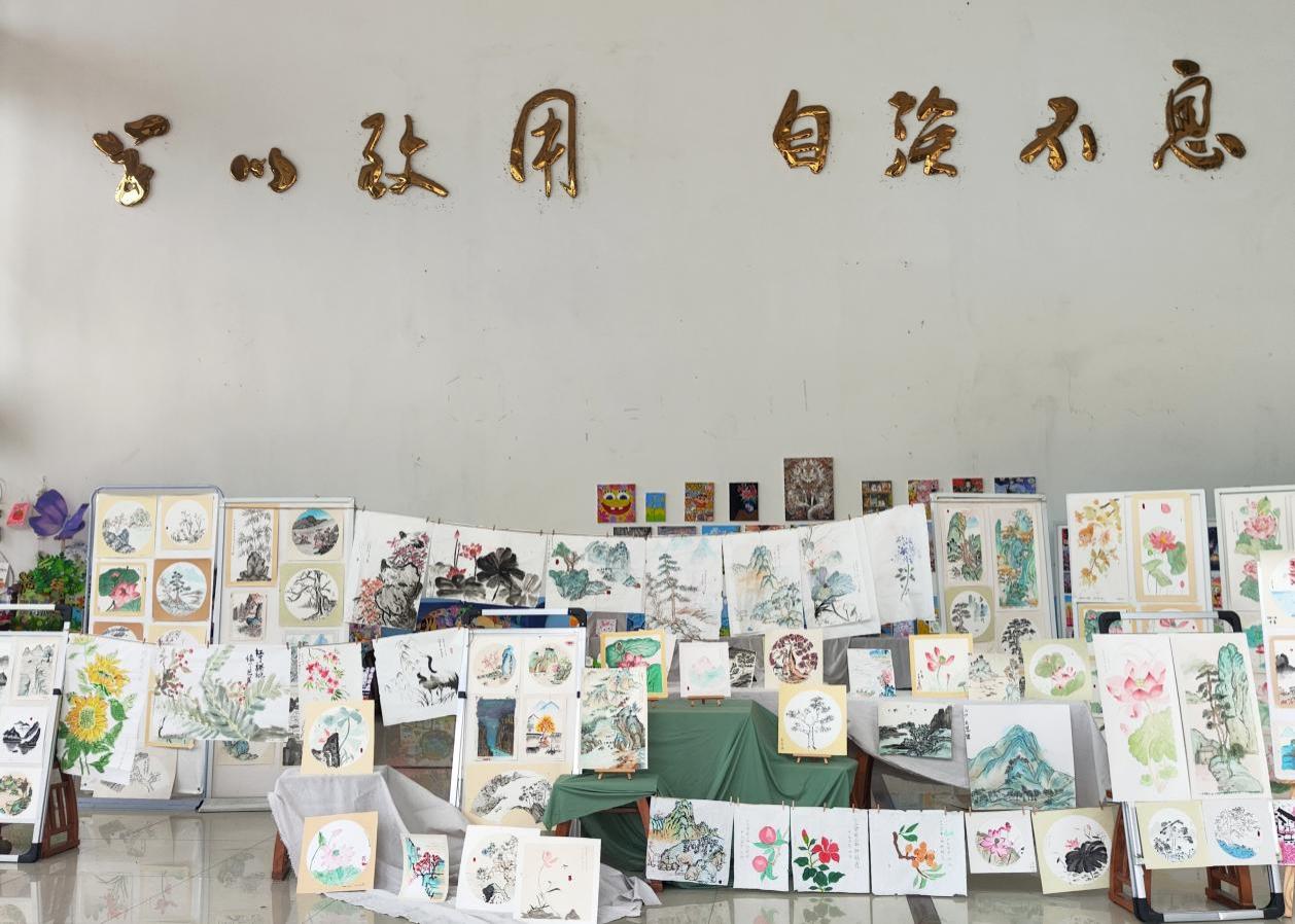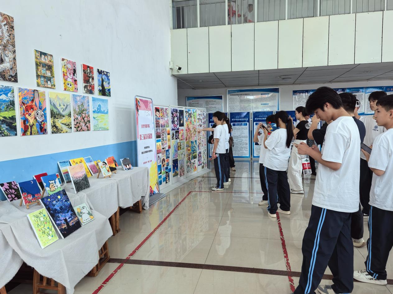 展览现场,风格各异、形式多样的作品有序陈列,构成了一幅绚丽多彩的艺术画卷。油画作品以其细腻的笔触和浓郁的色彩,生动地描绘出山川的壮丽、人物的神韵;山水画意境深远,墨色的浓淡干湿之间,尽显山水的空灵与雄浑;手工折纸和剪纸作品更是独具匠心,纸张在同学们的巧手下变成了栩栩如生的动物、精致典雅的花卉等。