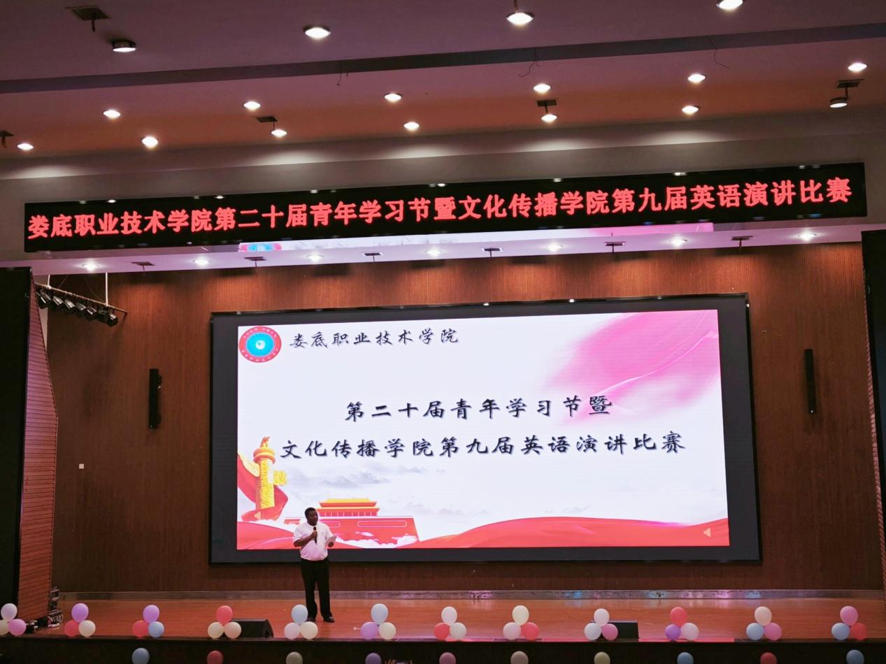 大赛正式开始前,刘书记上台致辞,他首先表达了对参与此次比赛的老师和同学表示感谢,并对通过初赛、复赛最后进入决赛的同学表示肯定。刘书记还提到英语不仅是交流工具,更是思维方式和文化的载体。本次比赛旨在为同学们提供展示自我的舞台,希望大家以语言为桥梁,传递中国青年的思考与担当。最后刘书记预祝本次英语演讲比赛圆满成功!