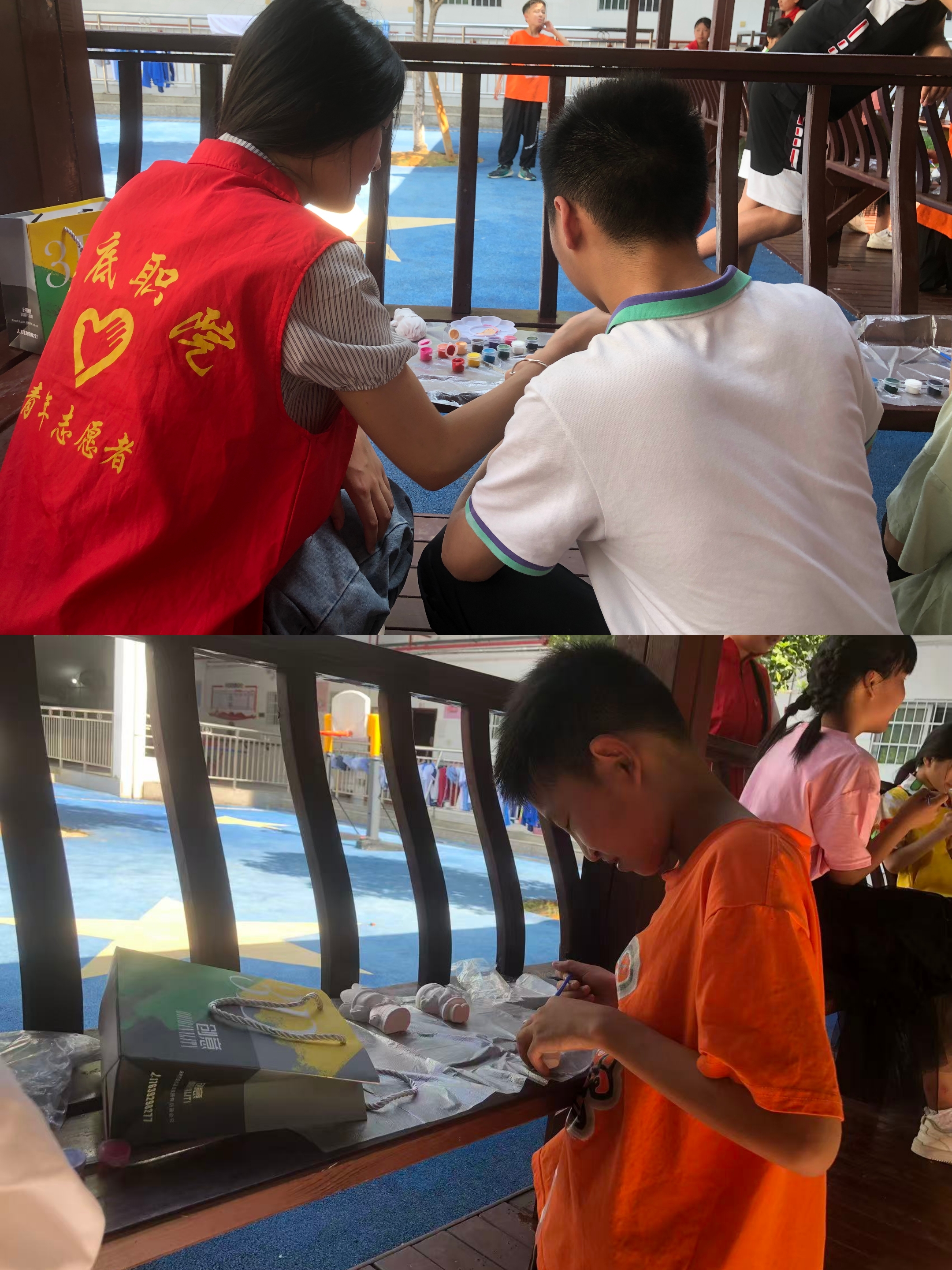 随后,志愿者们带领孩子们开展了创意绘画活动。他们为孩子们准备了色彩鲜艳的丙烯颜料和画纸,向孩子们讲解绘画技巧,手把手教他们调配颜料、勾勒线条。鼓励大家发挥想象力,自由创作。在志愿者的耐心指导下,孩子们兴致勃勃地拿起画笔,发挥自己的想象力,给石膏娃娃添上各种色彩。有的孩子为娃娃画上了五彩斑斓的衣服,有的给娃娃戴上了漂亮的皇冠,每一个作品都充满了童真与想象力。不一会儿,一群五颜六色的石膏娃娃被孩子们画完摆弄在一起,仿佛一个幸福大家庭。志愿者们也沉浸其中,与孩子们一同欢笑、创作,现场氛围温馨而融洽,一幅幅色彩缤纷的作品在欢声笑语中诞生,孩子们的脸上洋溢着灿烂的笑容。
