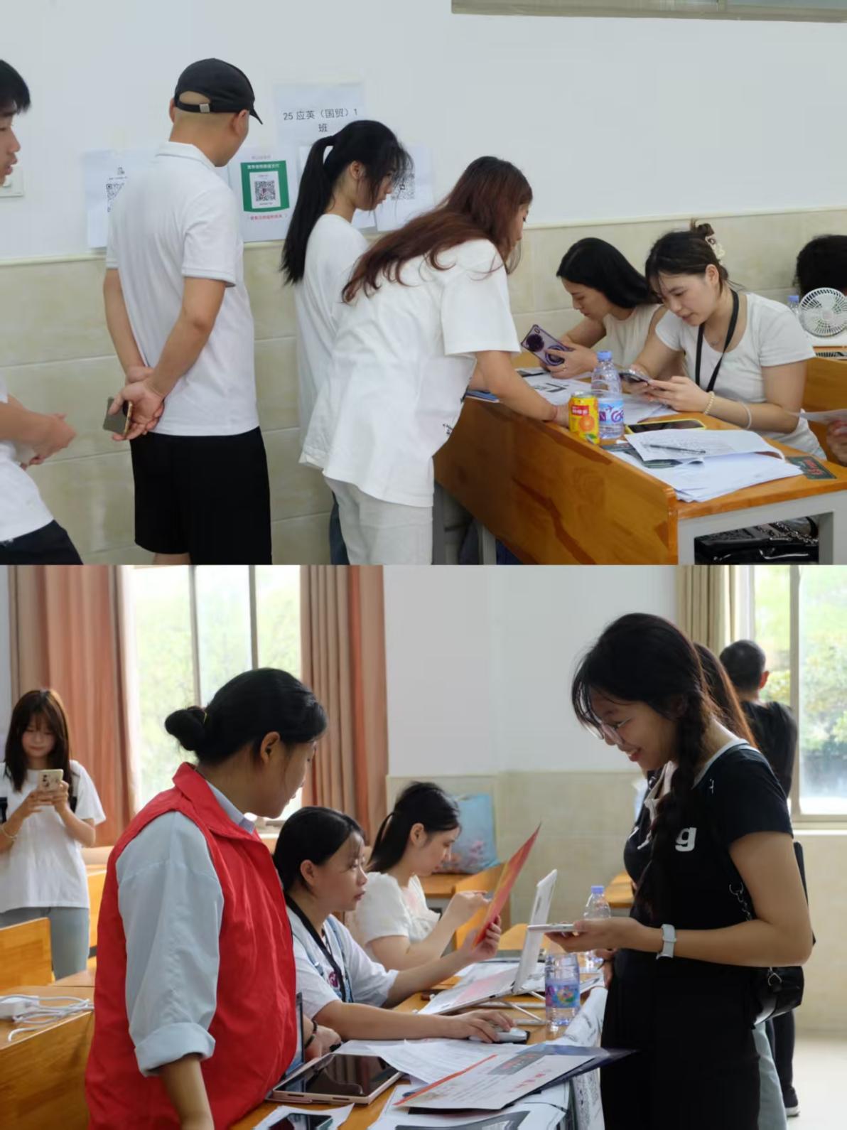 作为新生入学后的 “第一引路人”,辅导员及助理辅导员们也展现出专业与贴心。他们熟练操作新生信息录入系统,指尖在键盘上快速敲击,每完成一位新生的信息登记,都会轻声讲解后续的宿舍入住、体检安排等流程;遇到对专业学习有困惑的新生,还会主动分享课程学习方法,推荐专业相关的书籍,轻松融洽的交流氛围让新生脸上的拘谨渐渐消散,取而代之的是对大学生活的期待,也为新生开启大学之旅注入了第一份安心与归属感。