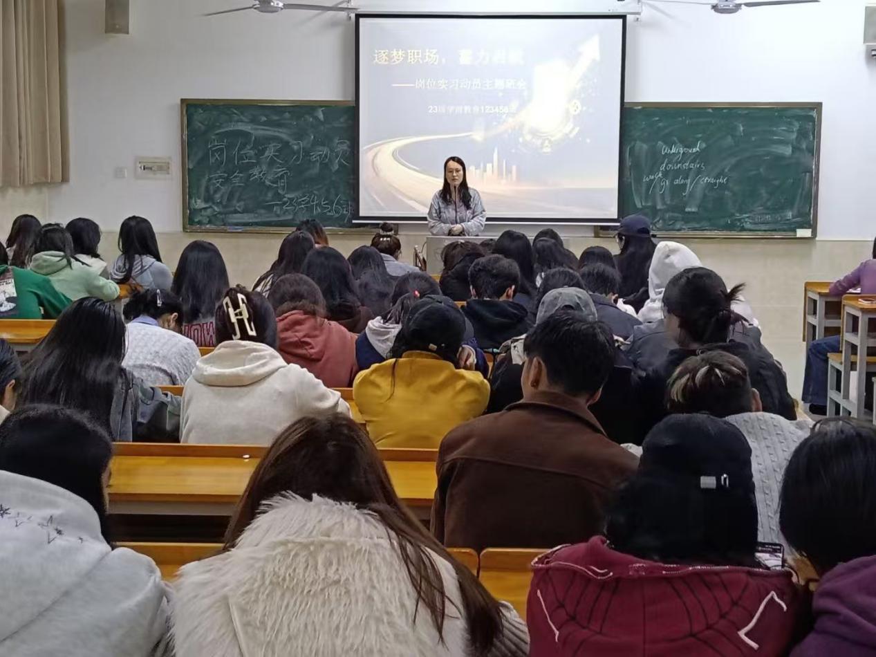 本次主题班会的召开,为2023级学生顺利进入岗位实习阶段奠定了扎实基础。接下来,学院将密切关注学生实习进展,持续强化与实习单位的协同联动,全力做好支持与服务保障,助力学生在真实职业场景中锻炼能力、积淀经验、实现成长,圆满完成从在校学习到岗位实践的关键跨越。