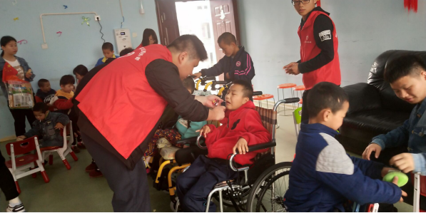 4月1日早上八点半,20名青年志愿者准时在医学院校门口集合出发前往娄底市社会福利院。在送去爱心的同时,志愿者们还纷纷带去了水果、文具、玩具、生活用品以及自己精心准备的小节目。九点钟在学院团总支书记张晶老师的带领下她们准时到达目的地,在工作人员的陪同下,首先来到了位于福利院4楼的公寓,这里是属于一群特殊身份的“天使”们的基地。志愿者们陪这群特殊的“小天使”们唱歌表演节目,讲故事,喂东西吃。更值得一提的是,当志愿者们拿出为他们准备的可爱小礼物时,“小天使”们纷纷围了上来,脸上露出灿烂的笑容,无比开心。尽管这里的孩子们身体或智力上存在缺陷,但他们同我们一样有一颗热爱生活的心。