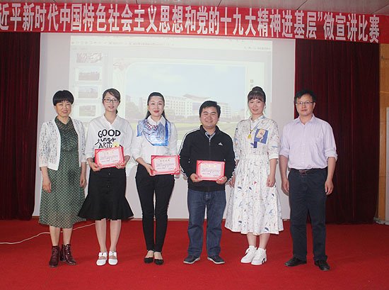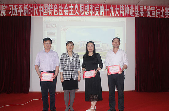 为贯彻落实中央、省委要求,全面推动习近平新时代中国特色社会主义思想和党的十九大精神“三进”(进教材、进课堂、进头脑),5月8日,我校举行“习近平新时代中国特色社会主义思想和党的十九大进基层”教职工微宣讲比赛,党委书记李文莲、党委副书记王健龙出席比赛,比赛由思政课部、宣传统战部、组织部、学校党课讲师团主办,各级党总支和直属支部协办。