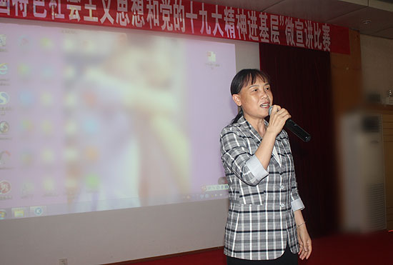 李文莲、督导团团长吴连贵、团委书记刘媛、思政课部主任周旺东、组织部副部长曾曙华、宣传部副部长张波、教务处副处长李宇才、思政课部副主任贺山青担任评委。经过全校各党总支初赛、复赛选拔出的15名选手参加决赛角逐。比赛中,选手们结合ppt,声情并茂,以小见大,结合从我校实际,深入浅出地介绍了自己对习近平新时代中国特色社会主义思想和党的十九大精神的理解,抒发了对新时代、对中国共产党、对中国特色社会主义的真挚感情,也为在场听众贡献了一场精彩的政治理论视听盛宴。