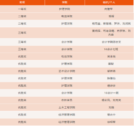 主持人讲解了演讲比赛规则后,一场美轮美奂的视听盛宴就此开始。比赛中,各选手紧扣主题,结合材料典型、自身经历进行演讲,通过不同的角度、不同的风格诠释了“立德修身,诚信为本”的深刻内涵。经过三个多小时的激烈角逐,最终会计学院王世千荣获一等奖;经济管理学院黄宁、机电工程学院邓兴荣获二等奖;护理学院罗梦汝、陈雅怡、机电工程学院杨文青荣获三等奖;汽车学院周磊、经济管理学院曾庆中、文化传播学院永措卓玛、曾晨溪、电子信息工程学院刘杰锋、刘琨平荣获优秀奖。