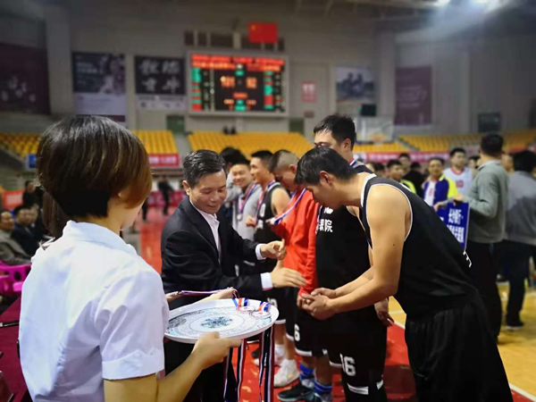我校篮球队由副校长龙伟担任领队,副校长周志和为队员之一,廖佰文担任教练,比赛过程中,党委书记李文莲、校长朱忠义亲临现场为队员呐喊助威。队员们骁勇善战、配合默契,经过六场比赛小组赛后挺入前四强,半决赛战胜规划局,进入决赛,并最终获得亚军。市人大常委会副主任肖有胜为我校代表队颁奖。