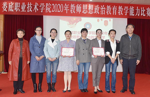 在评委们的认真评审后,教务处处长游新娥宣布了比赛结果,邓思琴团队、祝青团队获得一等奖,邱晓霞团队、钱朝军团队、张源红团队获得二等奖,刘莎莎团队、叶玲团队、毛凤杰团队、张翠娟团队获得三等奖。与会领导、评委为他们颁奖并合影。(刘艳)