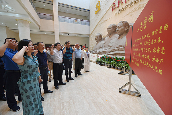 在“敢教日月换新天”雕像前,全体参观人员庄严宣誓,重温入党誓词,感悟初心使命,接受了一次深刻的革命精神洗礼。(刘艳)